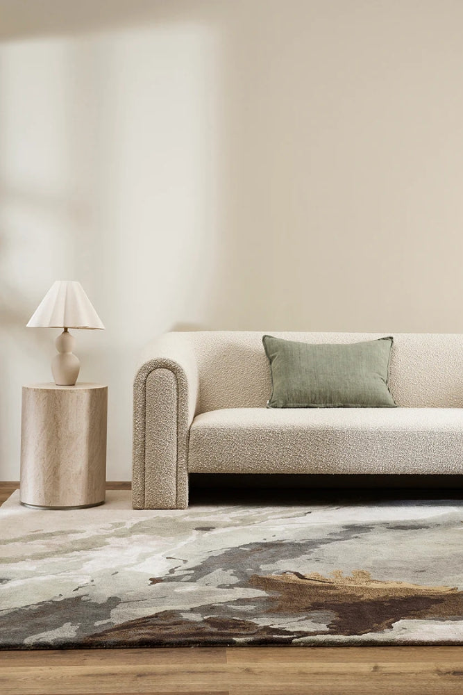 Inspired by aerial photography and geological layering, the Uluru is a stunning focal point to style your room around. Hand tufted in a soft wool-viscose blend, the muted tones of ivory, sage, grey and ochre are easily paired with complementary interior accents.