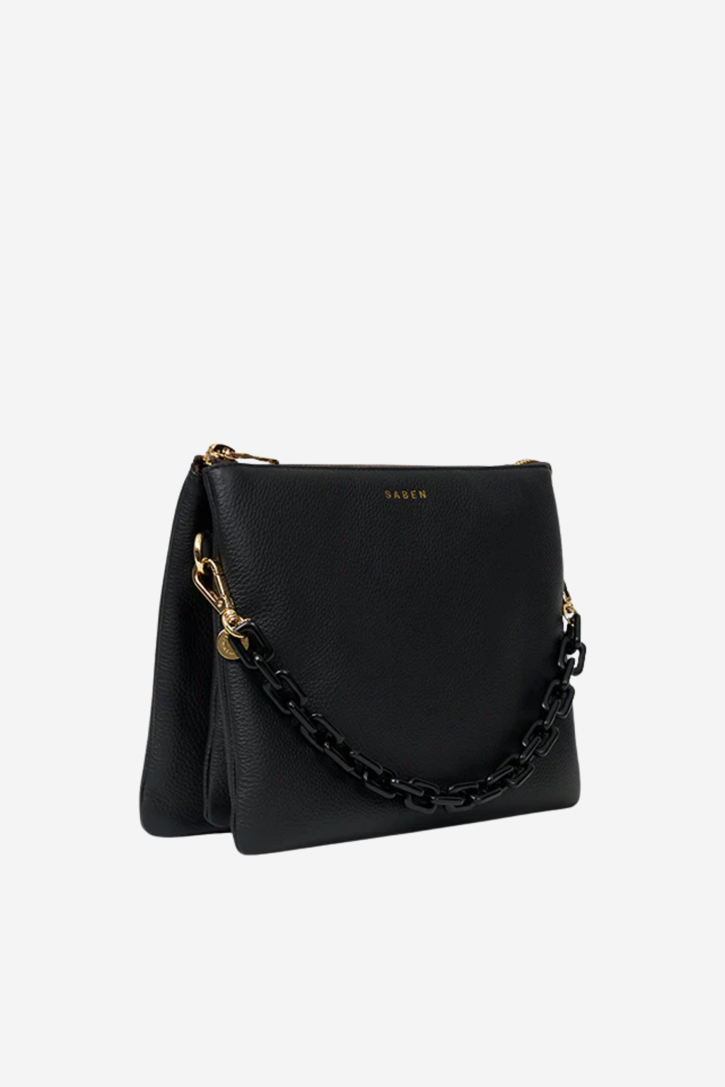 The detailed chain adds an elegant edge to her silhouette, while the versatile strap means you can wear her crossbody for hands-free ease or remove it entirely to carry her as a sleek clutch for evening. One bag, endless styling possibilities.