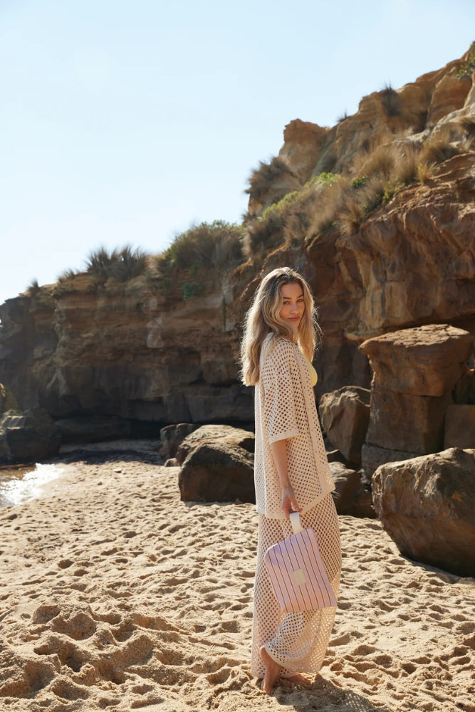 Crafted from durable water-resistant fabric, this base is ideal for holding skincare, sunscreen and holiday essentials.