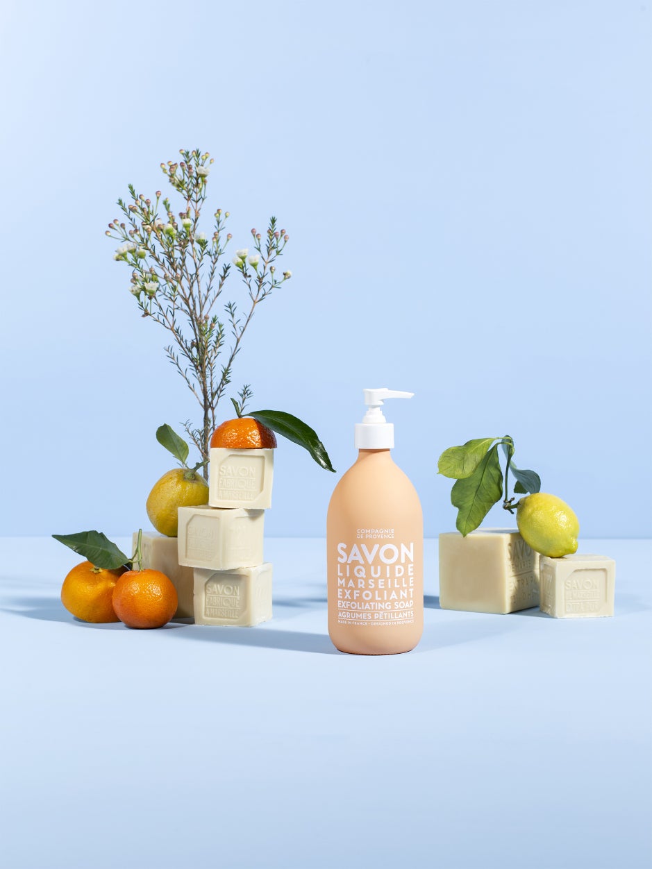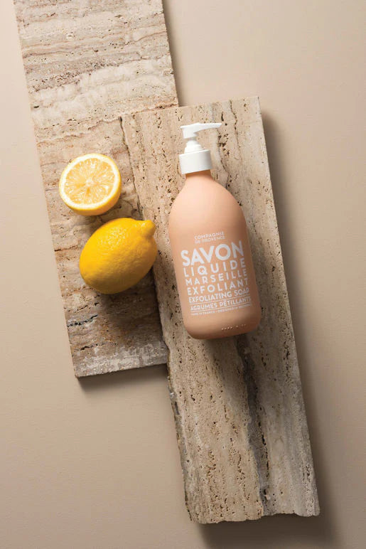 Extra Pur authentic liquid Marseille Soap is enriched with nourishing vegetable oils from Provence and ground olive stones harvested in the Mediterranean Basin to gently cleanse and exfoliate the skin in one simple step. Delicately scented with fresh citrus notes.
