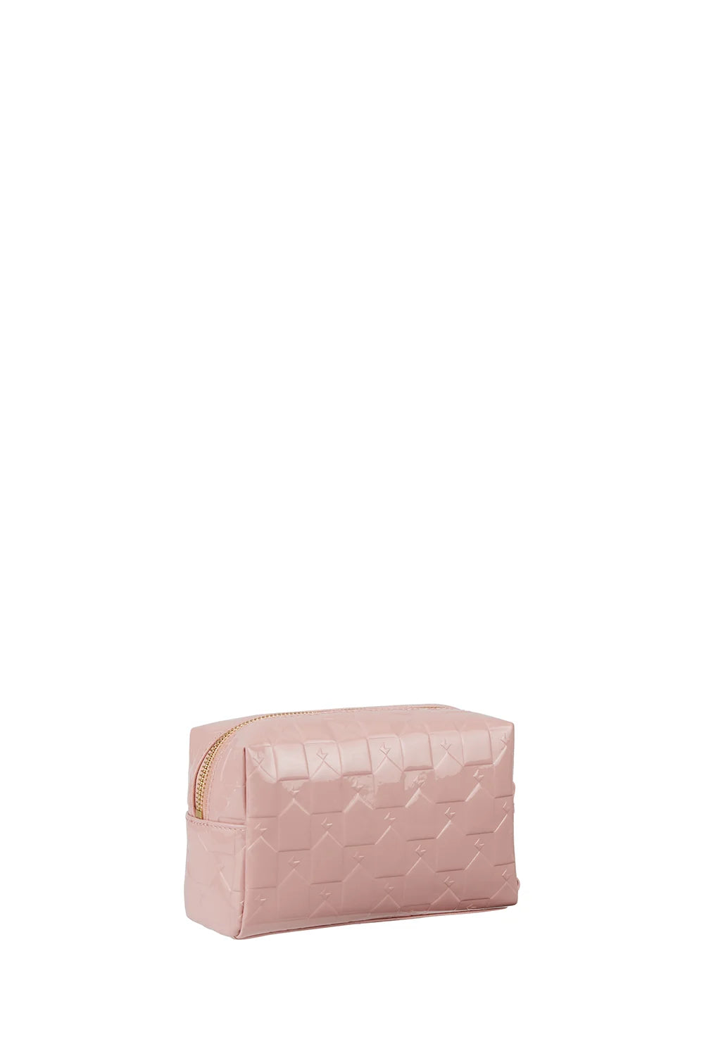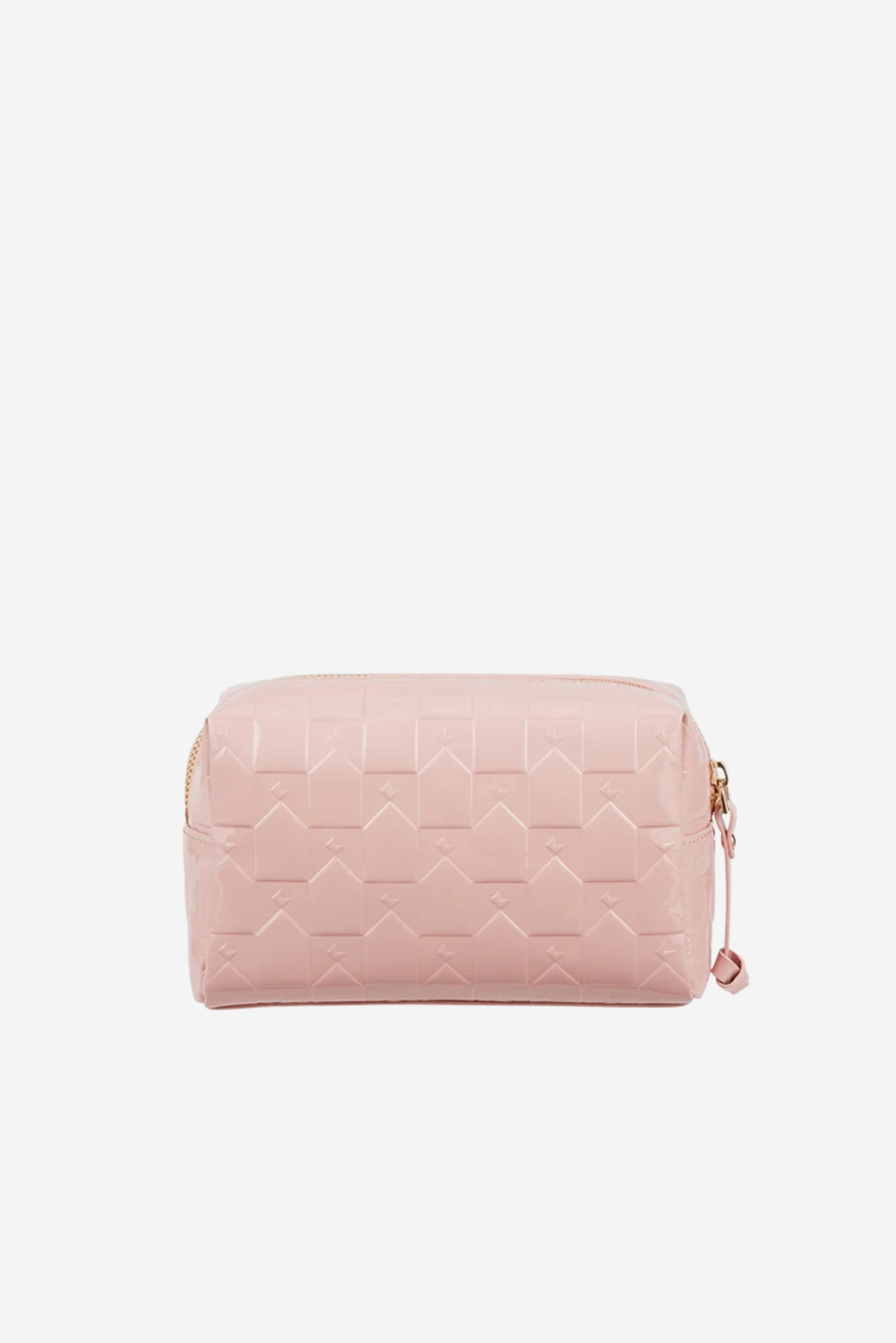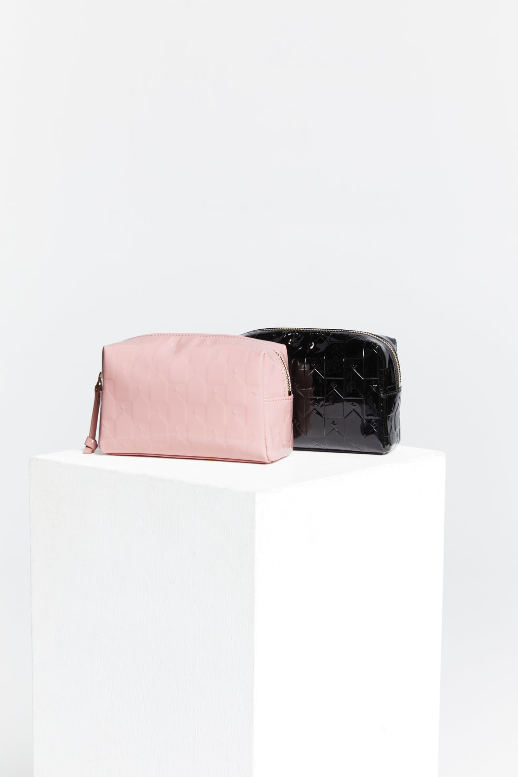 Meet your luxe new essential that enhances your daily routine. The Monogram Cosmetic Bag is crafted from 100% patent leather featuring the Karen Walker monogram print and fully lined with matching monogram fabric. It has a convenient zipper closure and a compact design, making it perfect for on-the-go beauty. Inside, you'll find a discreet pocket for added organisation and easy access to your favourite products.