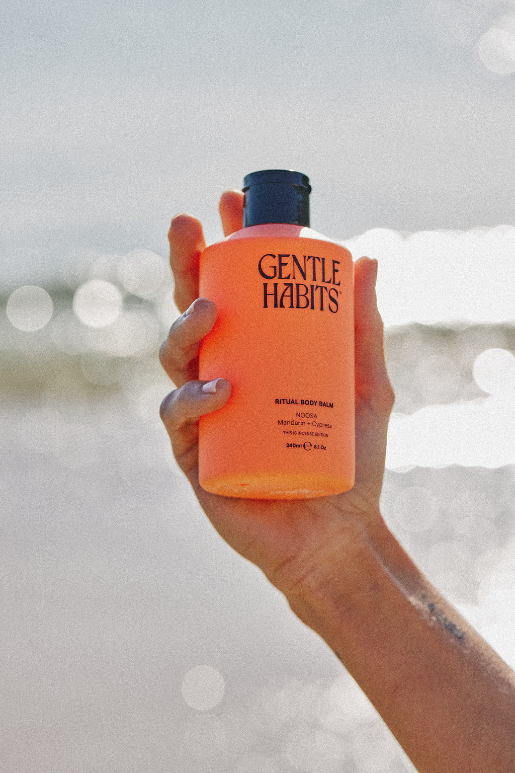Gentle Habits highly nourishing Ritual Body Balm harnesses the skin-replenishing power of Almond Oil, Shea Butter, Aloe Vera, and blended essential oils to protect and restore your skin from neck to toes.