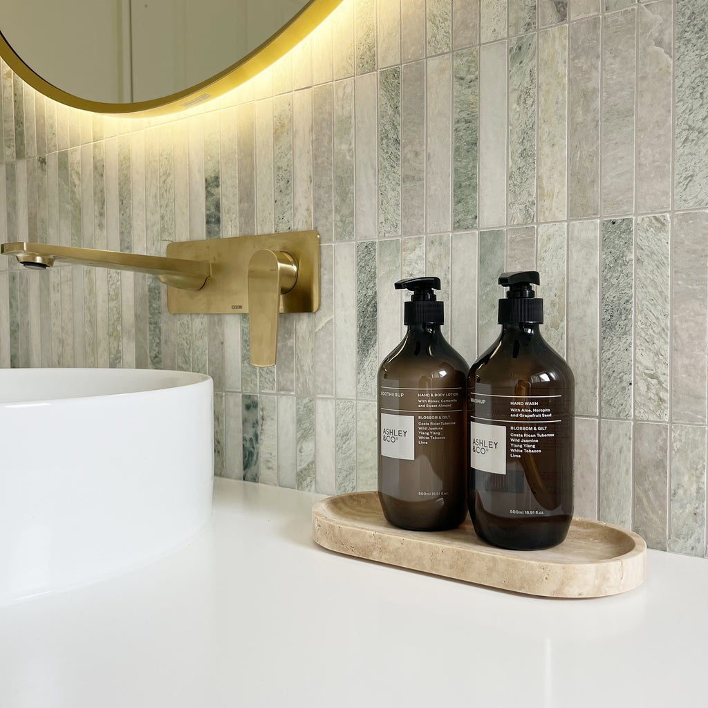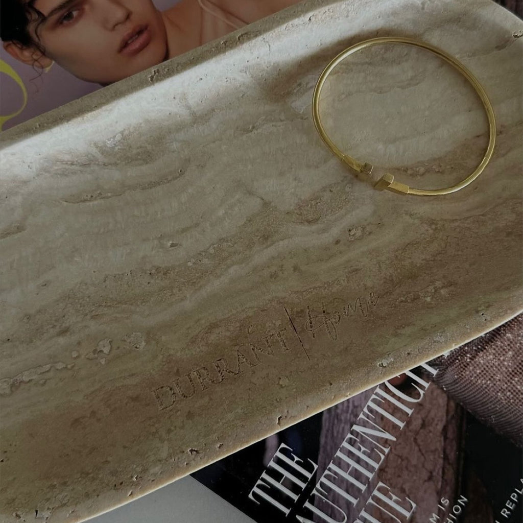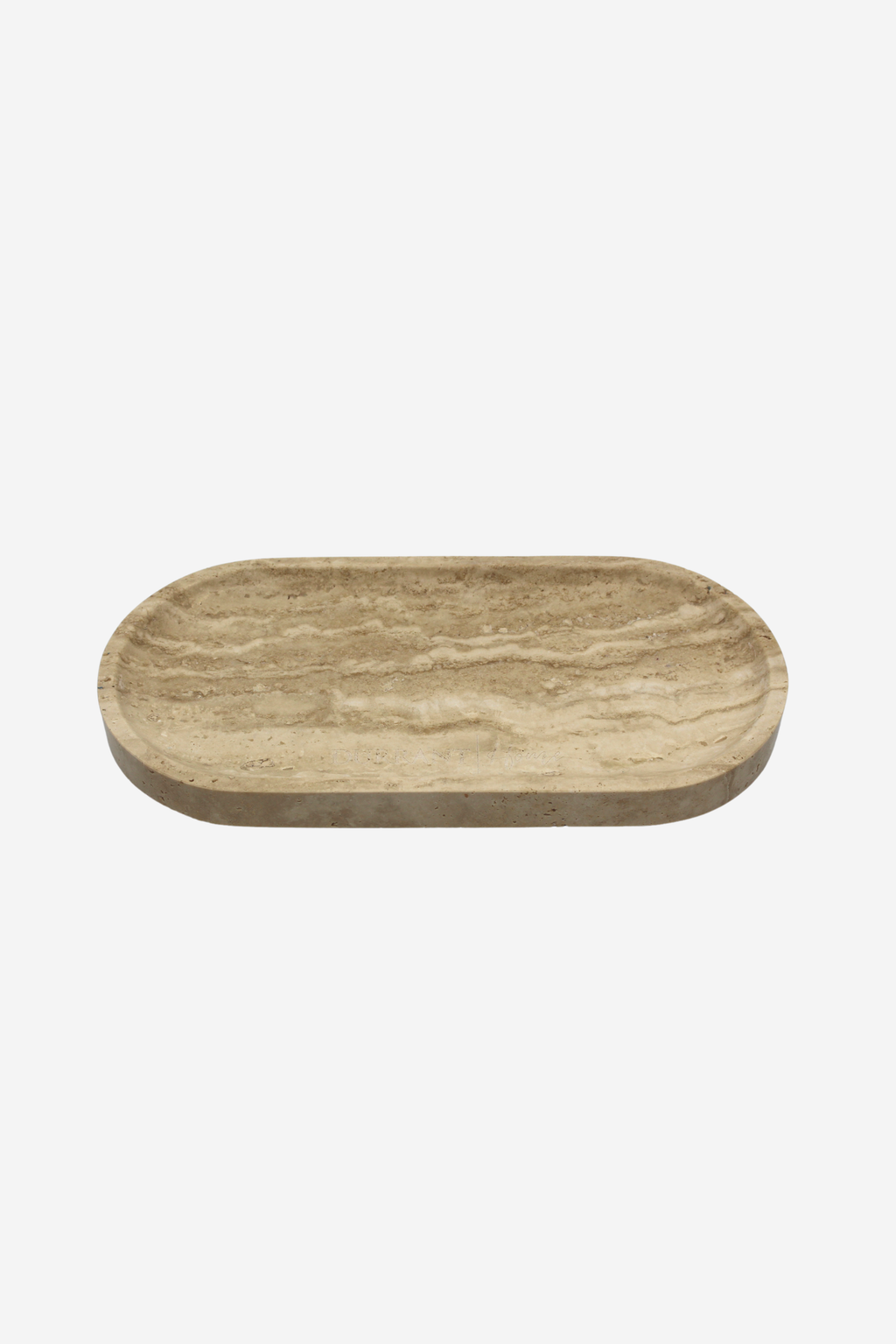 The Travertine tray was designed in New Zealand by award winning Interior Designer, Jamie Durrant. With the goal of creating luxury pieces to elevate your home. The real Travertine shows off a striking pattern that runs the length of the tray with natural stone texture around each side.