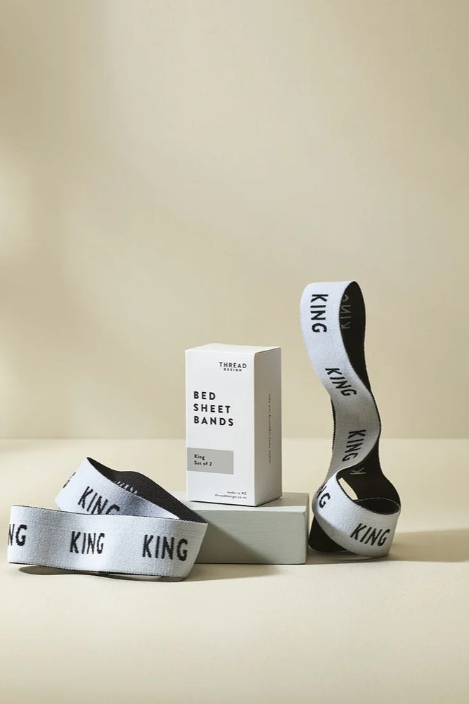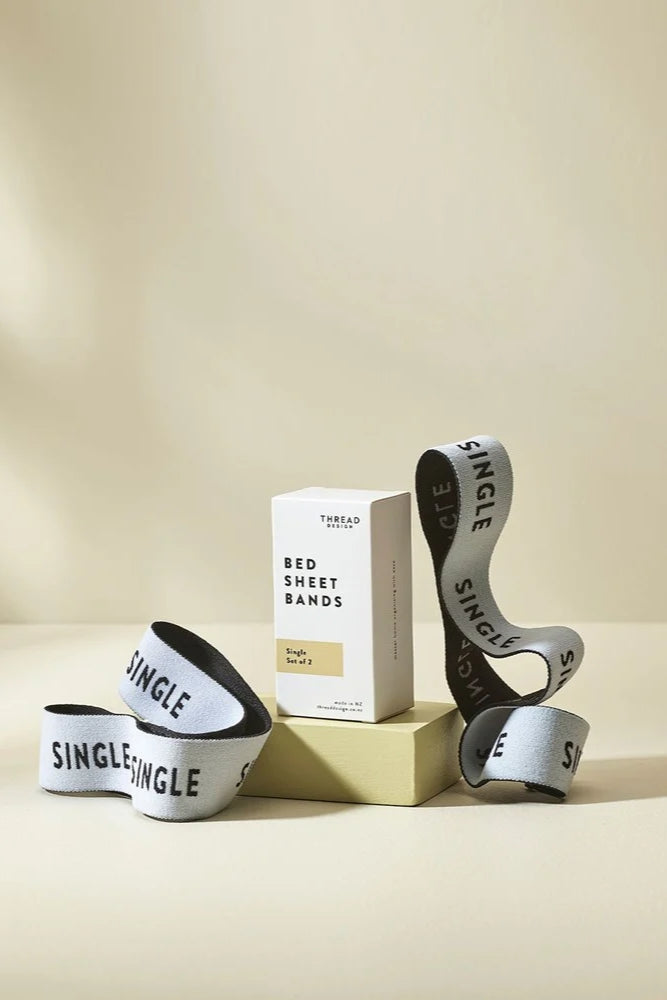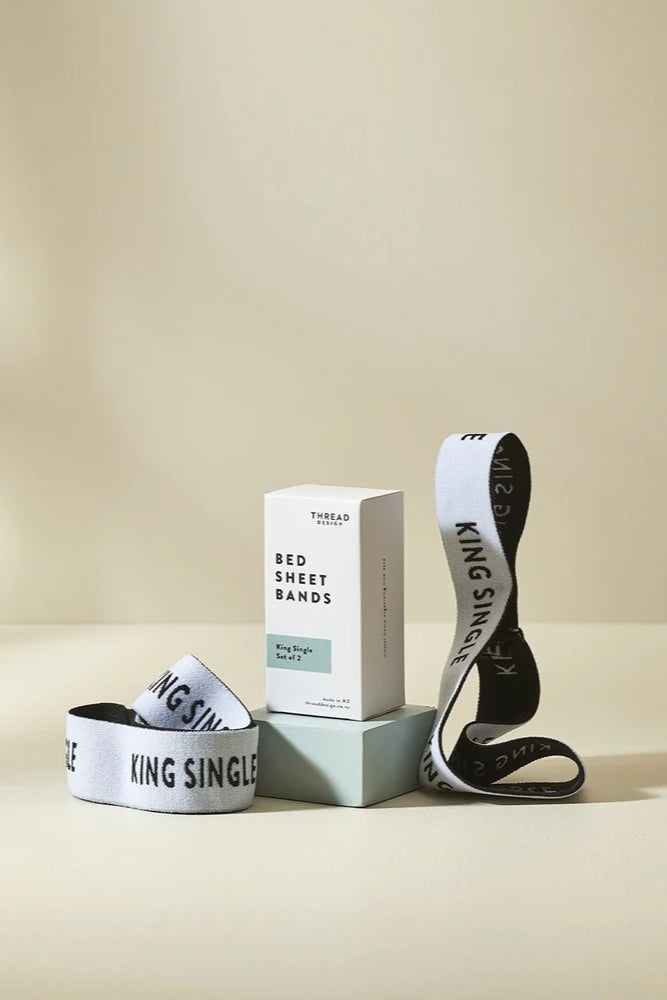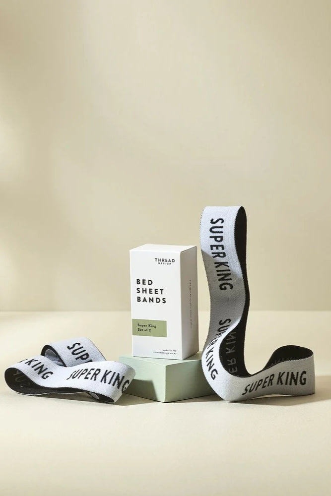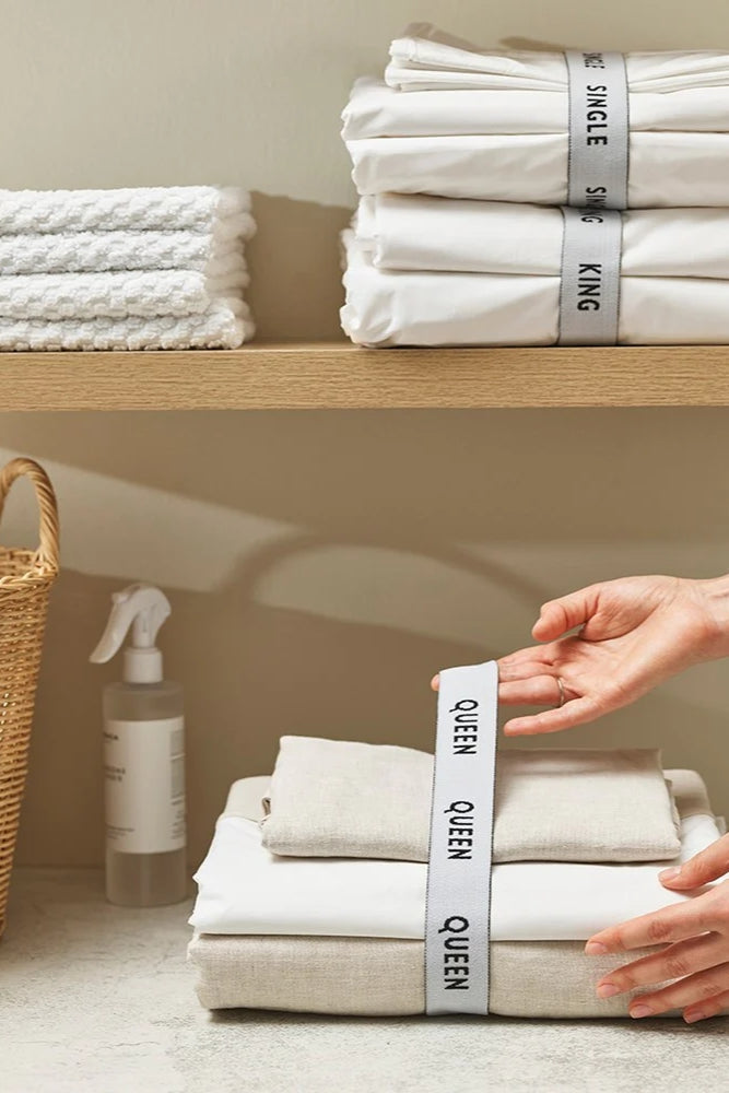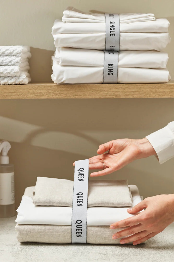 Organise your linen cupboard effortlessly with these clever Bed Sheet Bands from Thread Design — no more unfolding and refolding just to figure out sizes! These handy elastic bands wrap around your folded sheets and bedding, clearly labelling the size while keeping your sets tidy and organised.