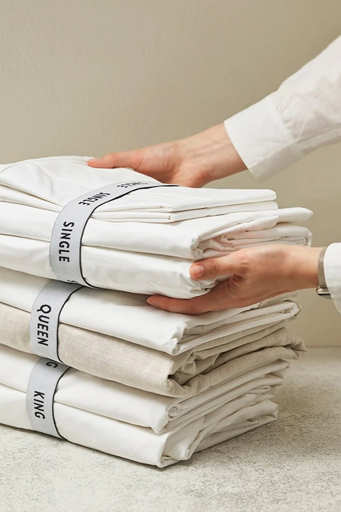 How To Use:  Fold your sheet or bedding set neatly. Stretch the correctly labelled elastic band around your linen for easy size identification and store until its next use.