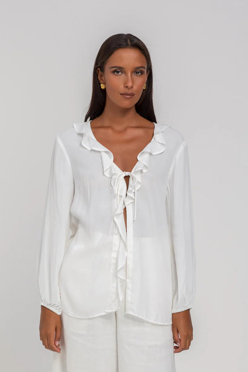 Presenting the Kismet Blouse - meticulously crafted from luxurious viscose in a classic ivory shade.