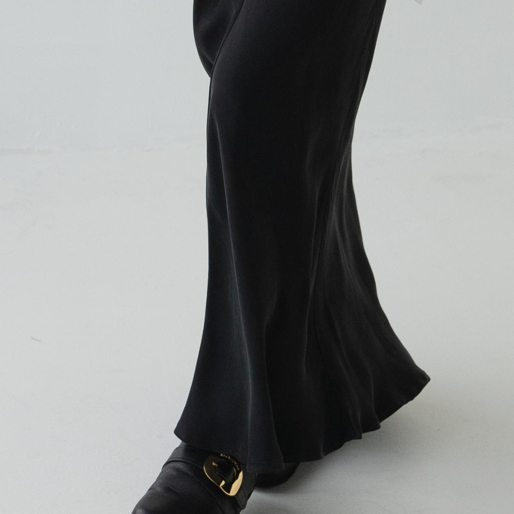 The only skirt you need. Maxi length & made in silky soft cupro fabric. Comfortable elasticated waist with a cute drawstring tie. Wear all year round with knits, tees, sandals or sneakers.