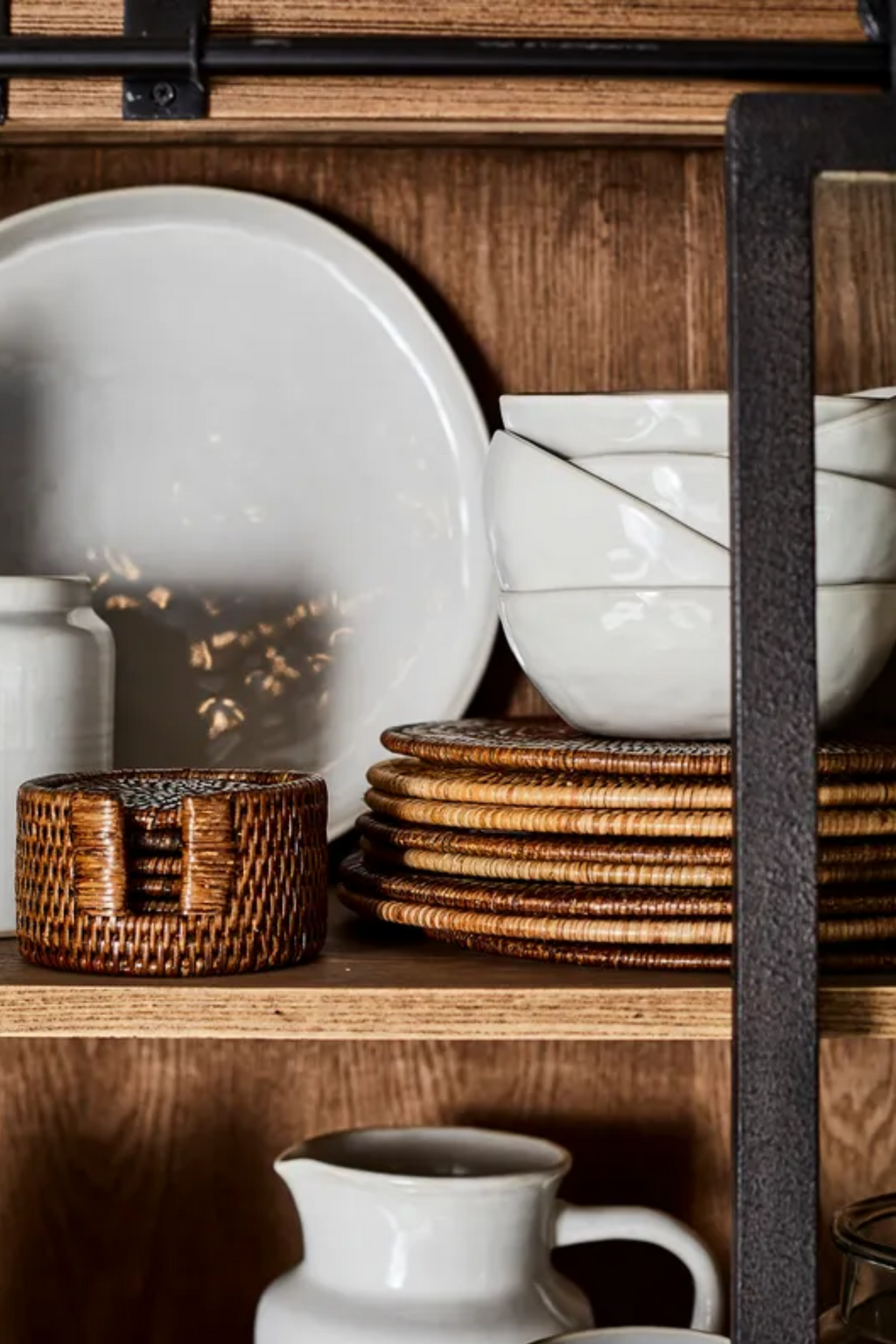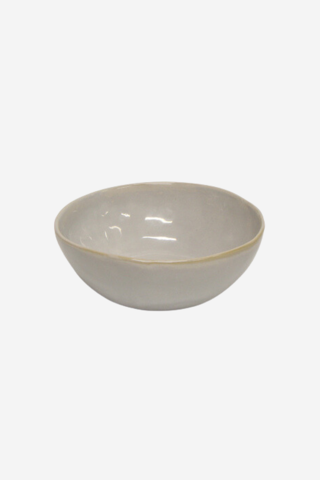 Freeform shaped small bowl in rustic white, perfect for poached pears and cream.