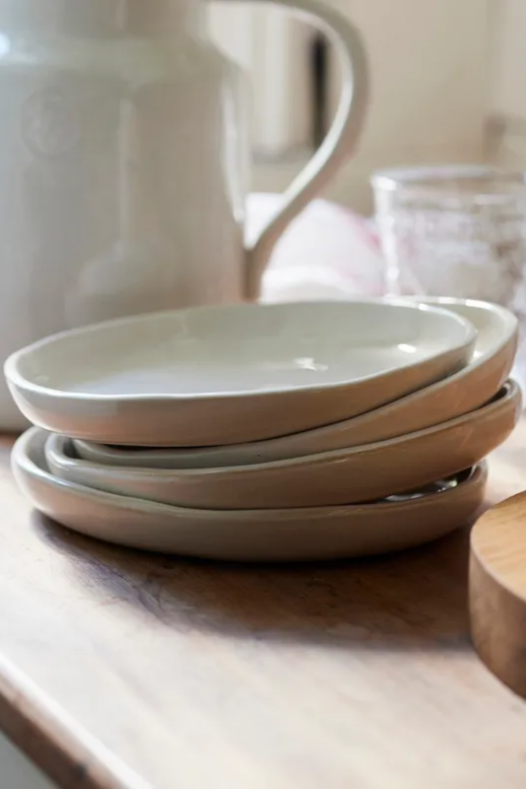 Medium organic looking plate in rustic white makes the perfect dessert or breakfast plate.