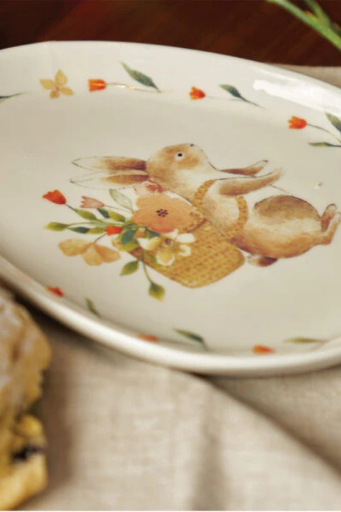 Treat yourself or someone special with this ceramic plate featuring a cute whimsical bunny design.