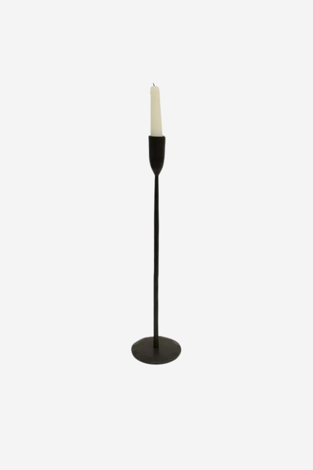 To prevent oxidisation and preserve the finish of this iron product, periodically wipe down with olive or linseed oil, ensuring excess oil is removed. If rust marks appear, rub down lightly with a fine grade steel wool and oil. We recommend never leaving a burning candle unattended.