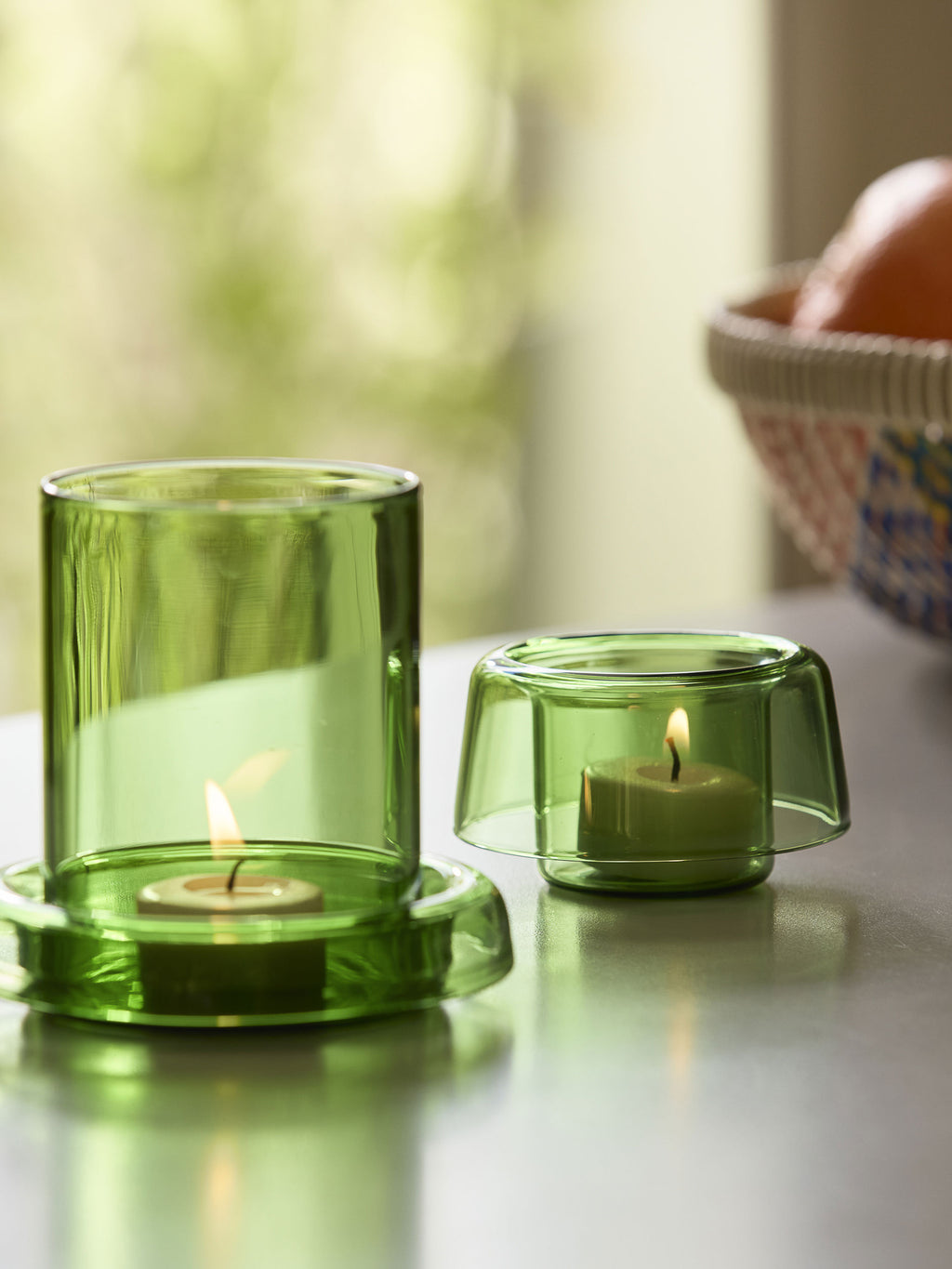The Cascade hurricane lamp is a refined two-piece design crafted from delicate yet durable borosilicate glass. Designed by our in-house team, the form features a cascading base plate with negative detailing, creating the illusion of floating elegance. The tall vessel further enhances the design and protects the candle flame from extinguishing.