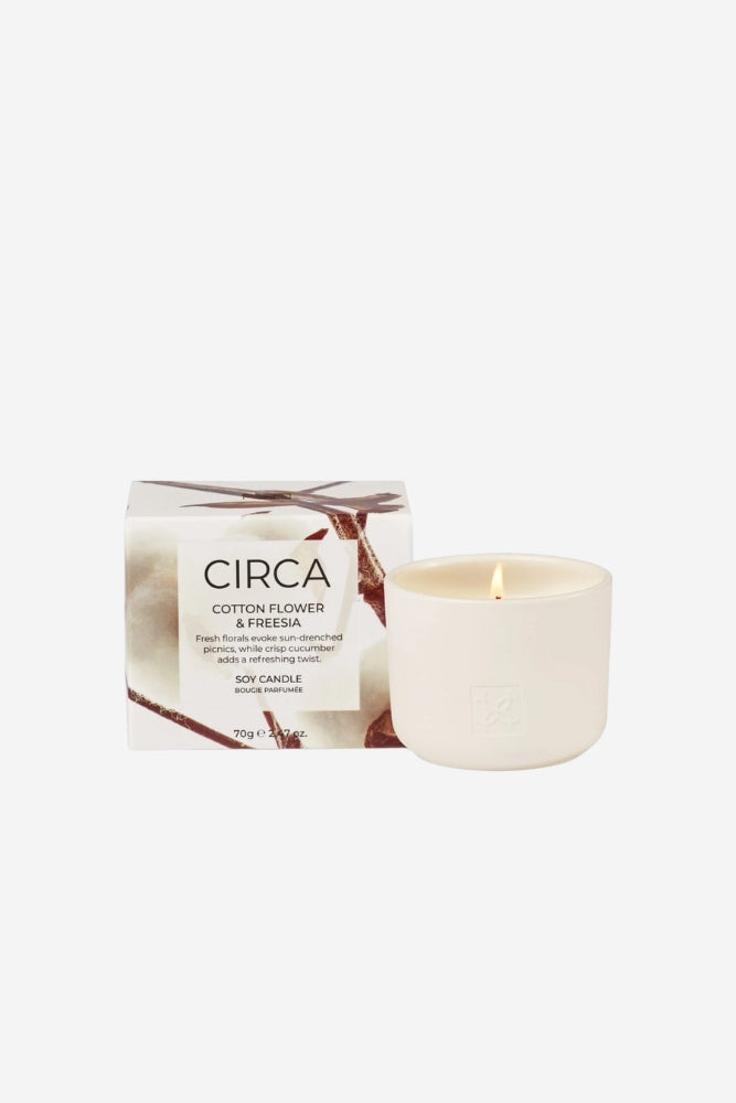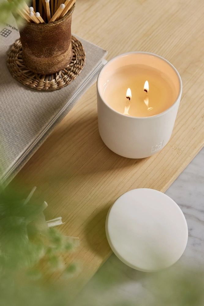 Available in a smaller 70g candle and standard 300g option in the new white matte ceramic vessel.