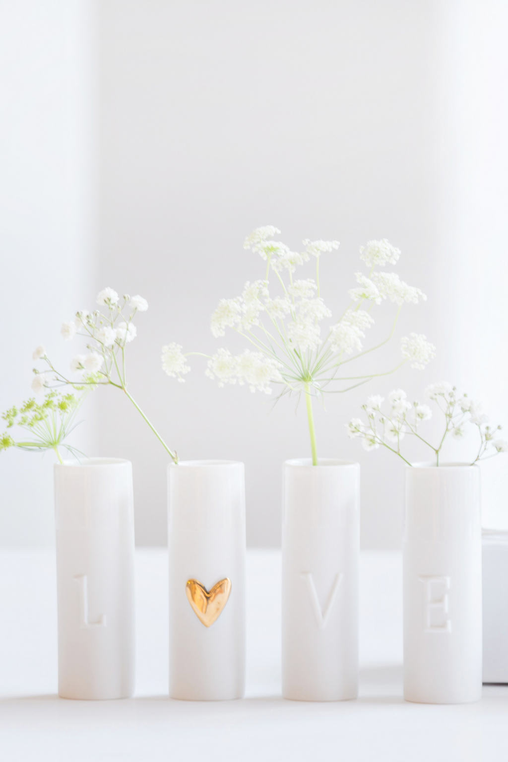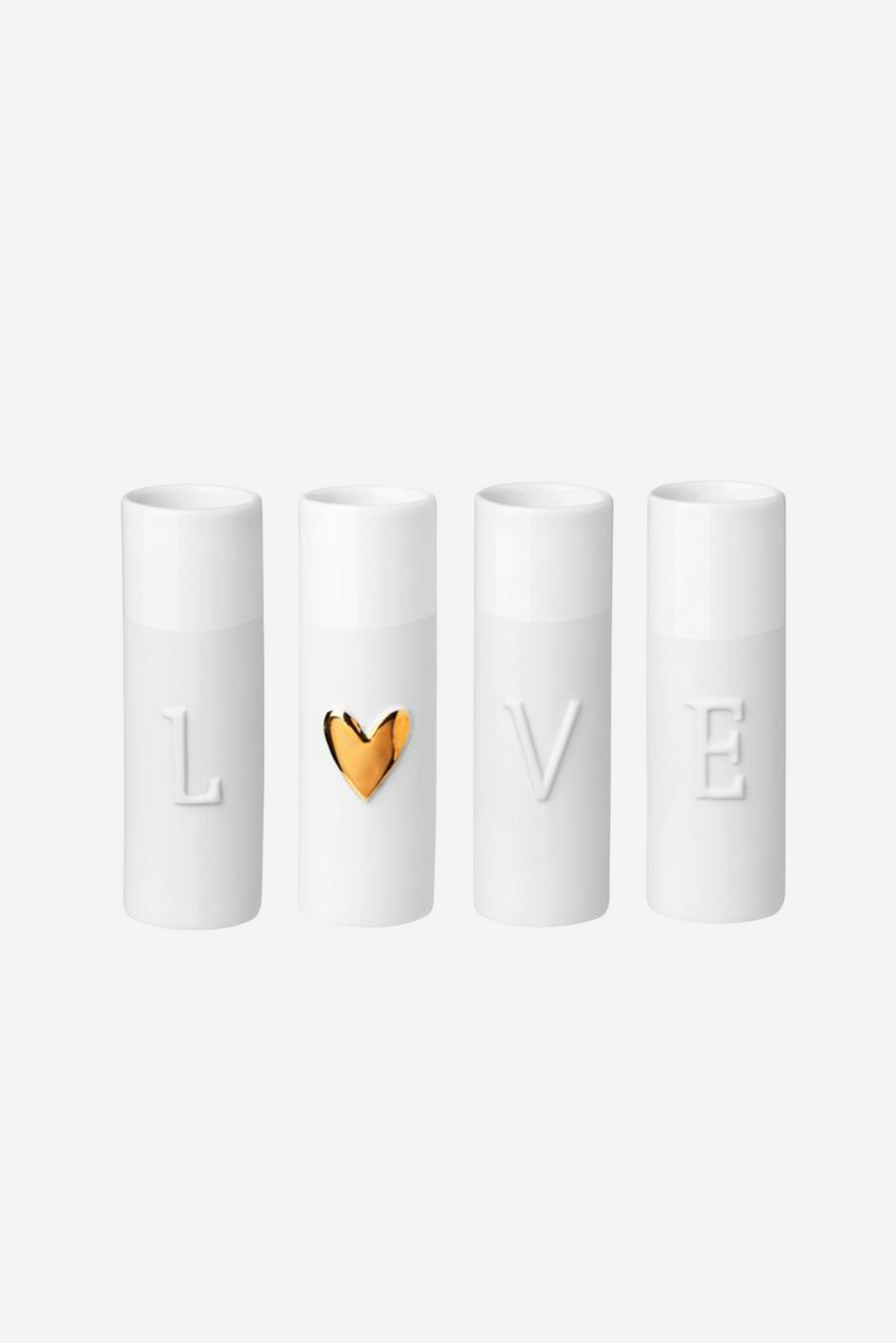 Gift boxed set of 4 stoneware mini vases, crafted from delicate porcelain with gold embellishment. These gorgeous vases make the perfect gift!