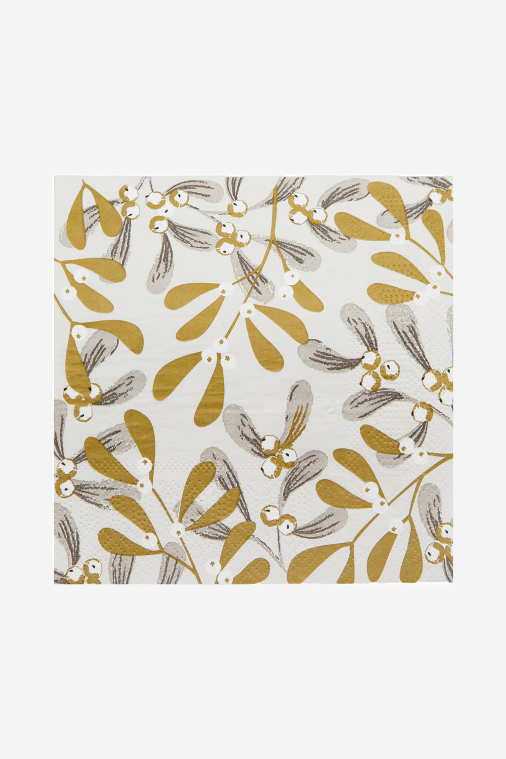 Spread on your lap, tucked into your collar or folded around your champagne glass, this silver and gold mistletoe napkin looks good even catching your spills! Make this beautiful gilded napkin the napkin of choice for your Christmas tablescape. It looks dazzling on or beside a plate, folded or unfurled and pairs wonderfully with other products in our Mistletoe range. Napkin size: 33cm x 33cm unfolded Pack size: 20 Paper napkins + 1 Our sets of napkins are packaged in cards with a cut-out window. To keep them looking their best for your guests, we've included an extra one which sits at the front. Plastic-free and 100% recyclable.
