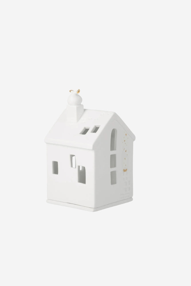Made from unglazed porcelain - each house comes with a candle plate and a lift-off house.
