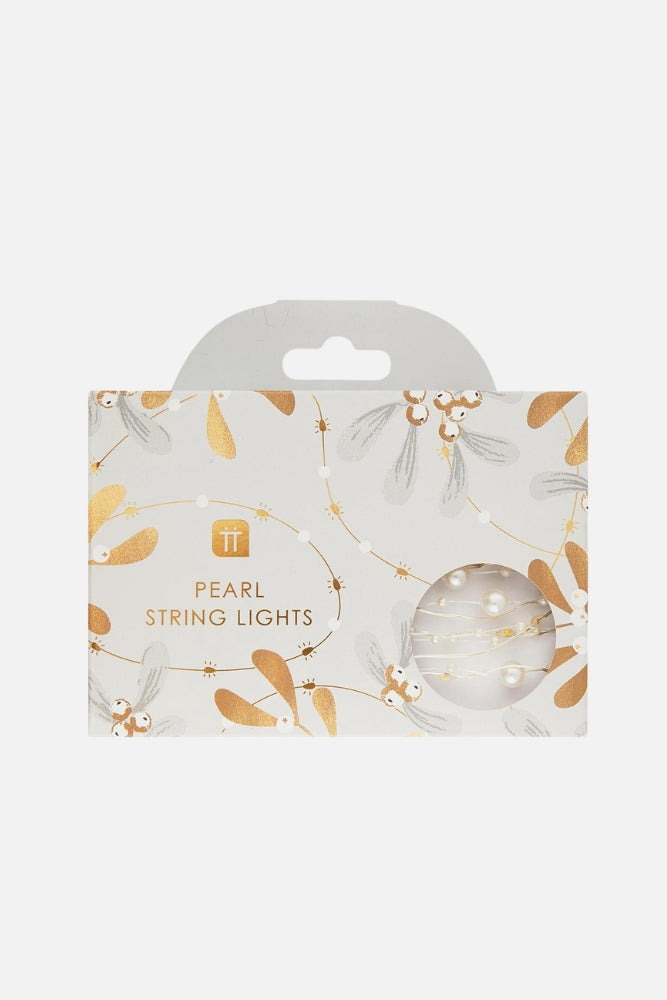 A warming decoration in your home; these white bead string lights pack a brilliance that bely their small size. Use the soft, warm yellow glow to illuminate your tableware by weaving along a table runner or stringing it up overhead to create an atmosphere. Why stick to the table - they look just as fabulous as wound along your bannister to light the way upstairs or on the edges of your shelves or mantelpiece to give your home a little lift. Length: 3m (10ft) string of white LED lights with white beads Product info: Battery type 3 x AA, batteries not included. Suitable for indoor use only.