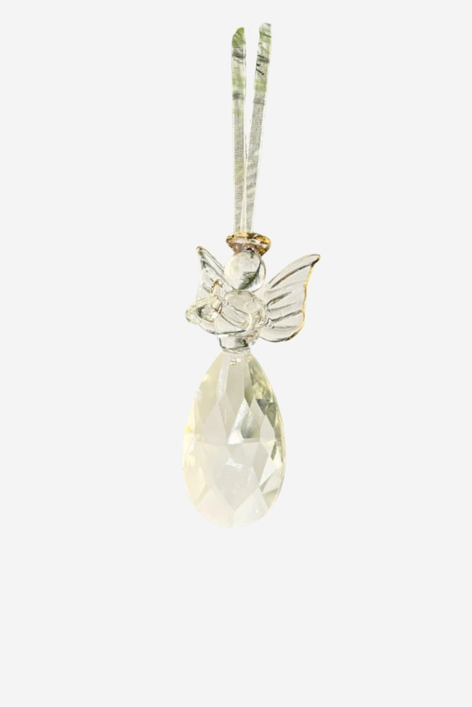 8cm Clear Crystal Angel with Gold Head Ring for hanging.