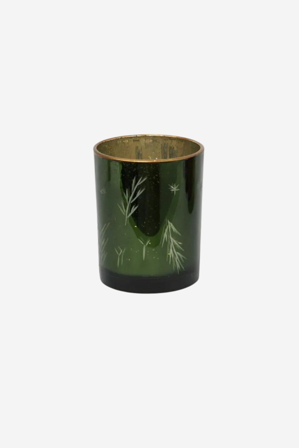 Glass votive with needle etching is a delicate and charming addition to a Christmas tablescape, bringing an elegant and festive touch.Colour: GreenComposition: GlassCare Instructions: Wipe with soft dry cloth.Dimensions: 10cmLx10cmWx12.5cmH