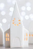 Simply place a tealight candle or battery tealight candle on the base and place the house back on top. Made from matte unglazed porcelain and comes with a candle plate.