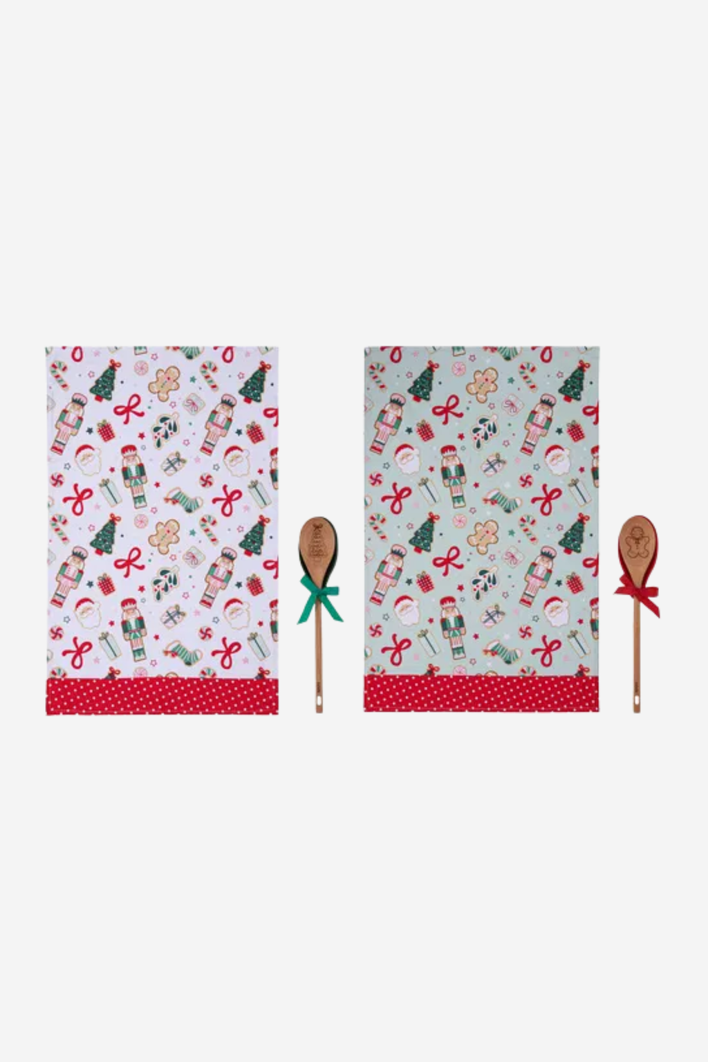 Green Spoon rest comes with Christmas Tree Spoon and Light green tea towel