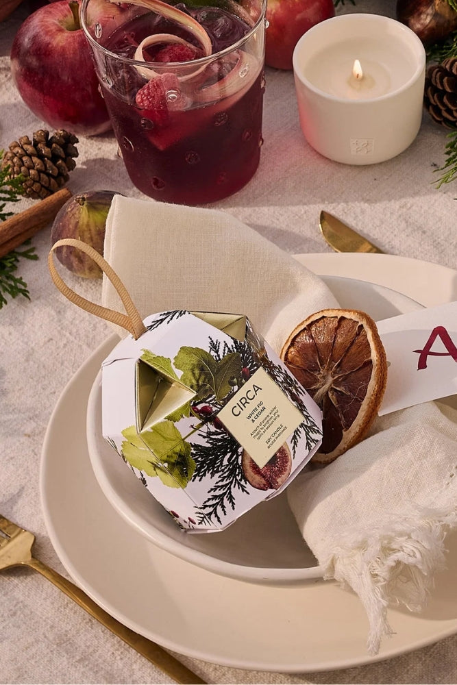 Woody and inviting, this blend of White Fig & Cedar is softened with Orchid and warm Spice. Pop it in a stocking or hang on the Christmas tree