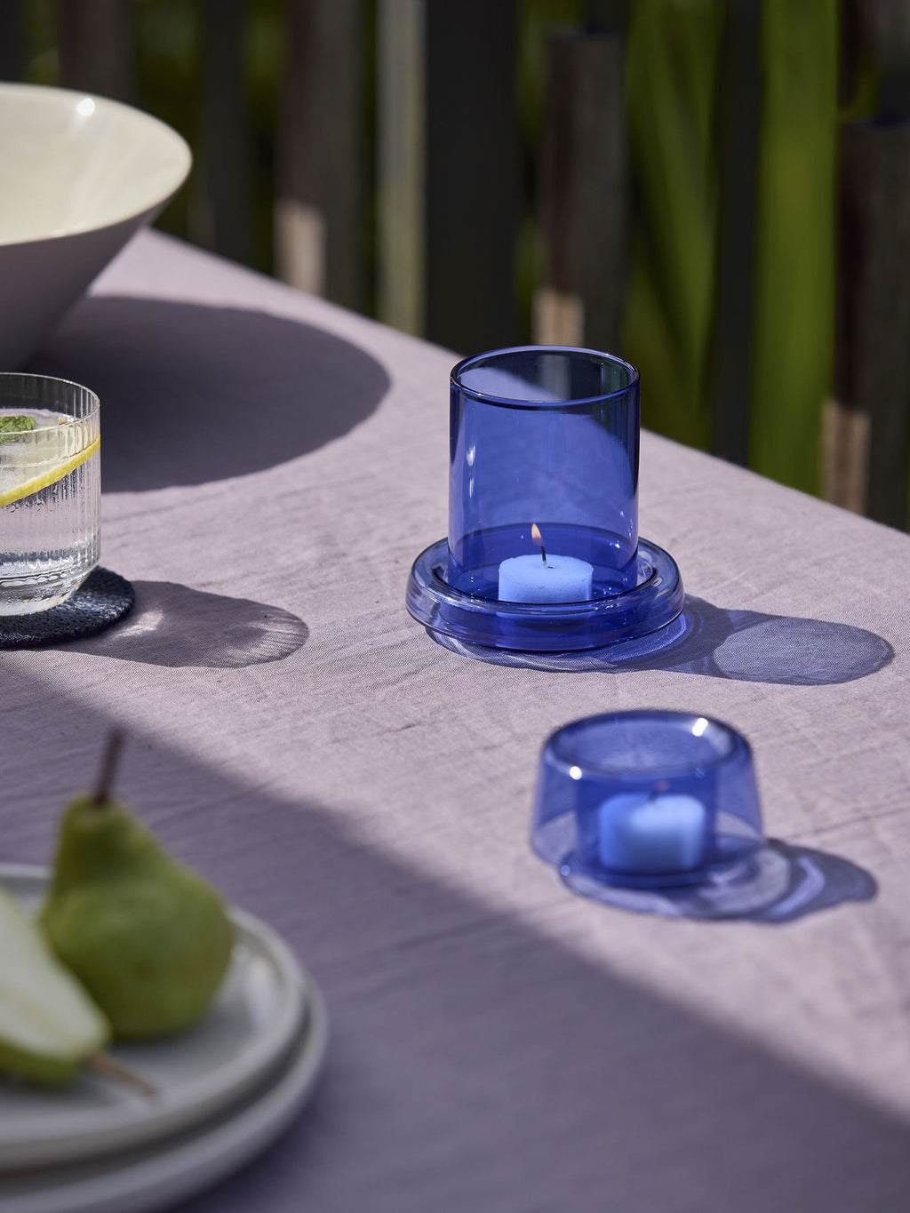 The Cascade hurricane lamp is a refined two-piece design crafted from delicate yet durable borosilicate glass. Designed by our in-house team, the form features a cascading base plate with negative detailing, creating the illusion of floating elegance. The tall vessel further enhances the design and protects the candle flame from extinguishing.