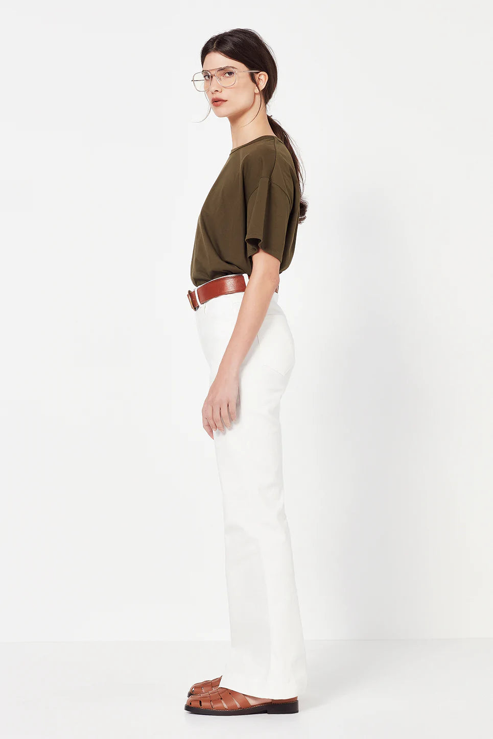 The Kingston Tee is a true wardrobe staple for the warmer months. Cut from the best quality, Japanese, breathable 100% cotton knit, this relaxed tee features a clean dropped shoulder, flattering high crew neckline and stepped hemline perfect for French tuck styling.