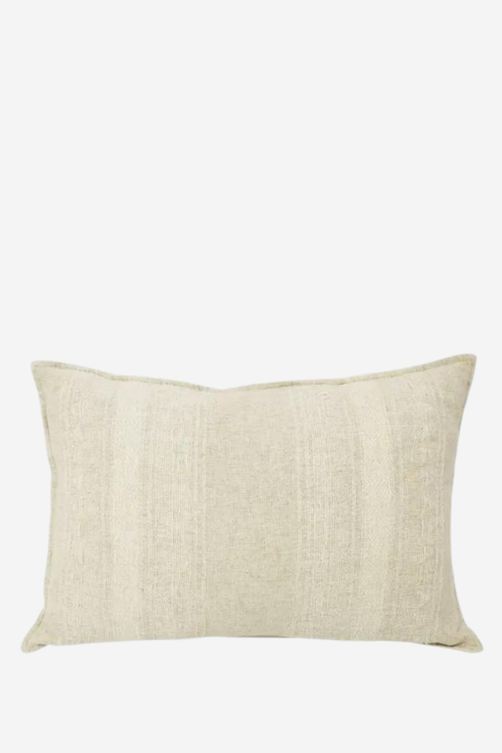 Raw texture is celebrated in this refined, viscose linen mix woven cushion. The delicate stripe adds texture and depth to this beautiful cushion. Fully feather filled
