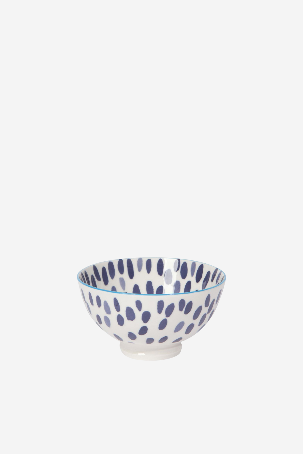 Eye-catching porcelain bowls with contrasting patterns are stunning, either as a collection or as accent pieces. Stamped designs have a wonderful texture and hints of colour circling hand-painted rims.
