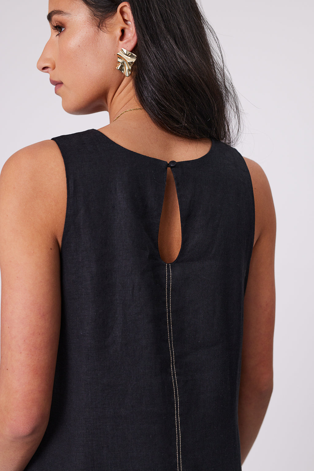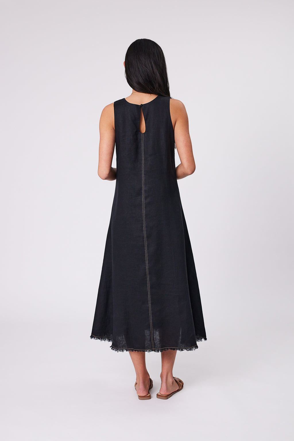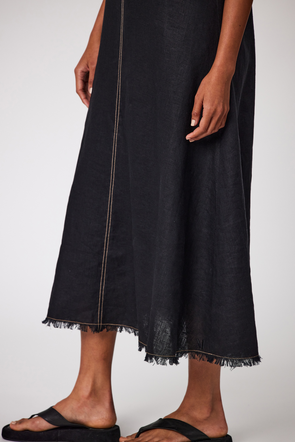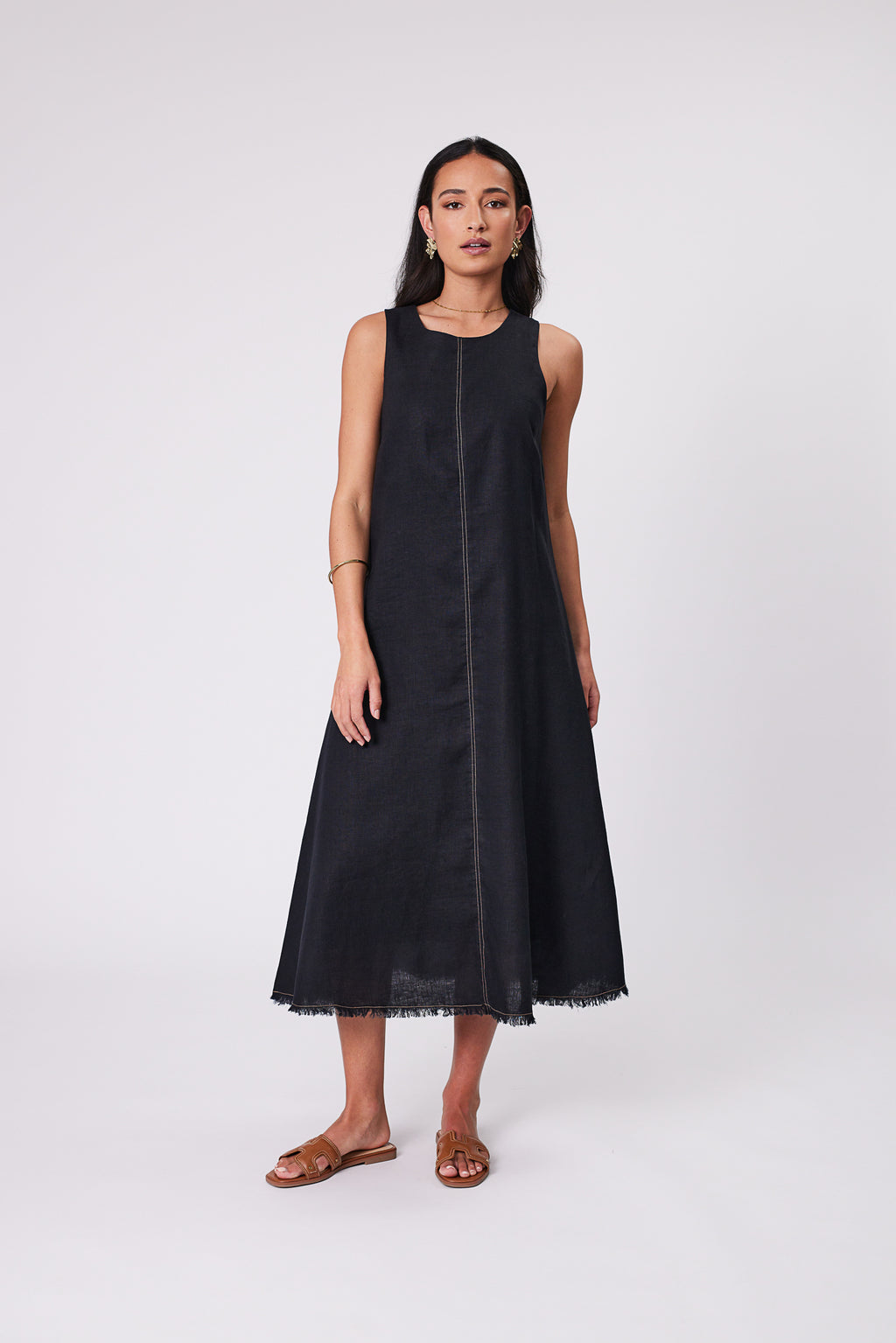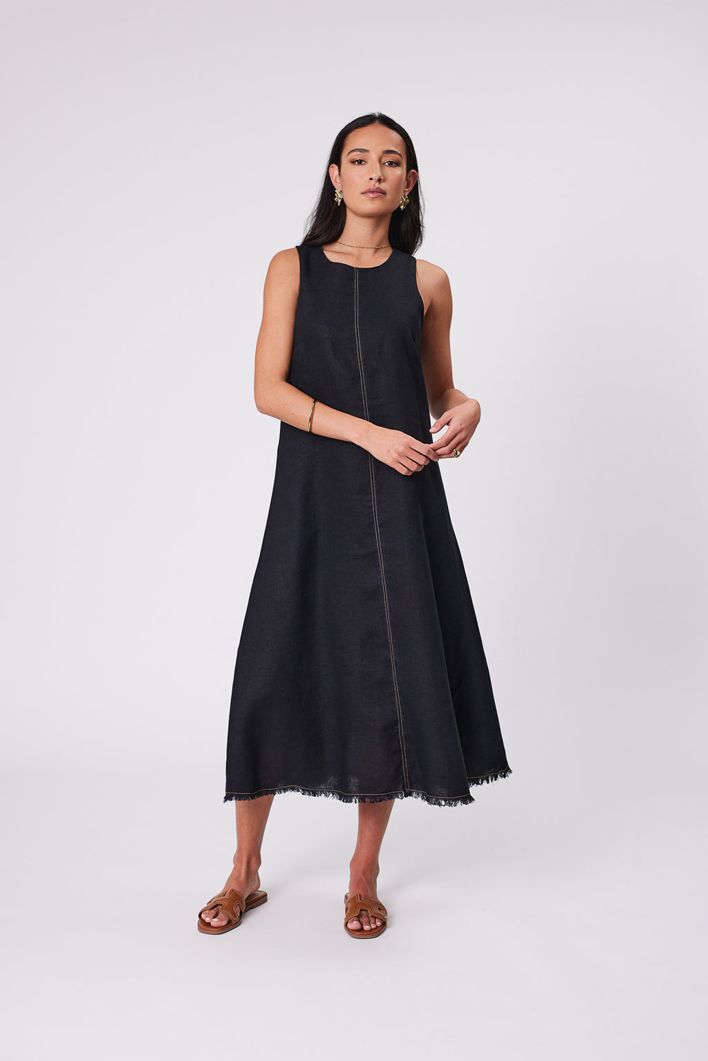 Long and lean, breezy and chic — Florence Linen Dress is your new best (dressed) friend. This dress is crafted in 100% linen, in a flattering a-line cut with a high scoop neckline. Functional pockets finish the maxi dress with utmost convenience, while its frayed hemline and contrast stitch detailing add a modern touch. The classic silhouette and sophisticated design make this dress an instant staple in your collection. Dress it up with high heels or down with sandals, this linen dress is a blank canvas.