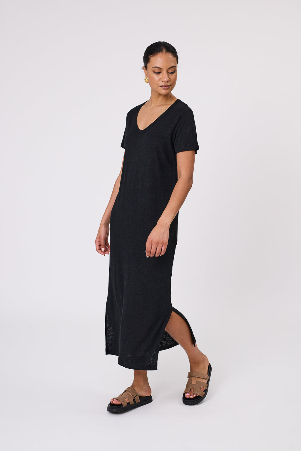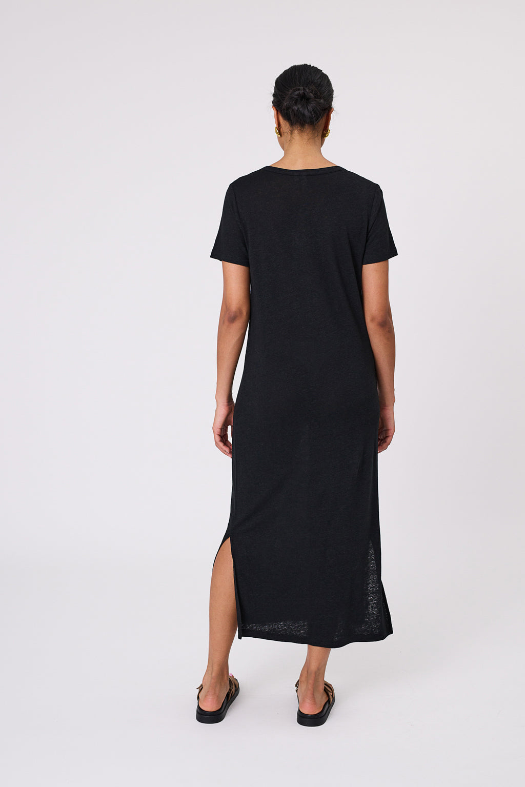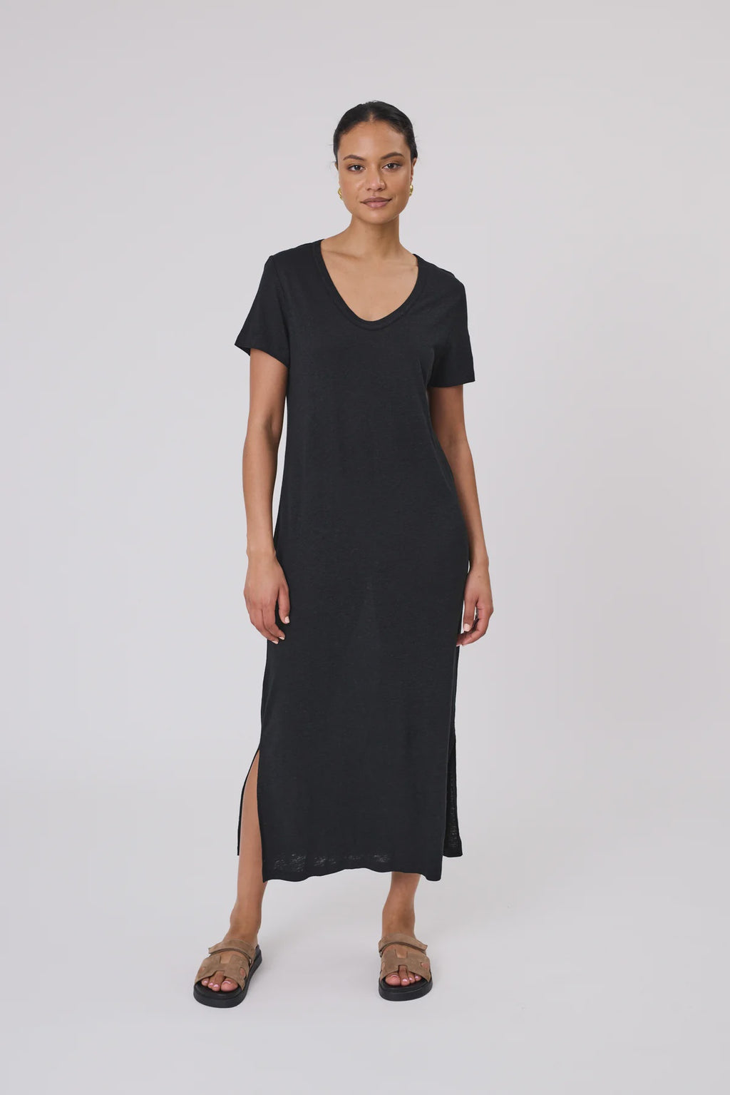 Meet the Noto T-Shirt Dress, based on our best-selling Noto Linen Tee. Crafted from a luxe linen-rayon blend with a subtle slub texture and designed with a relaxed fit, this dress is easy and comfortable to wear all day long. This maxi-length dress features short sleeves, a flattering scooped neckline, and binding detailing. Effortless yet elevated in its stylish simplicity, pair it with your favourite sandals or sneakers for a relaxed, everyday look.