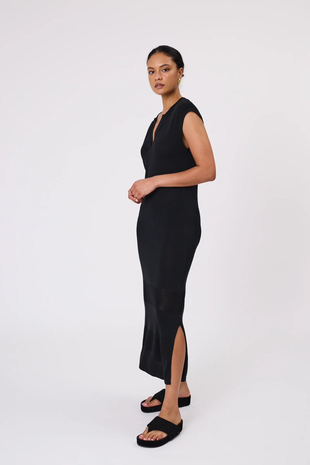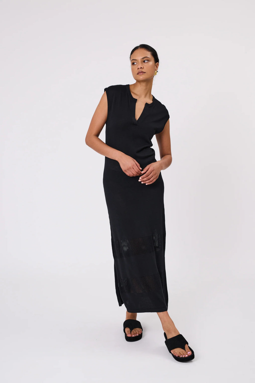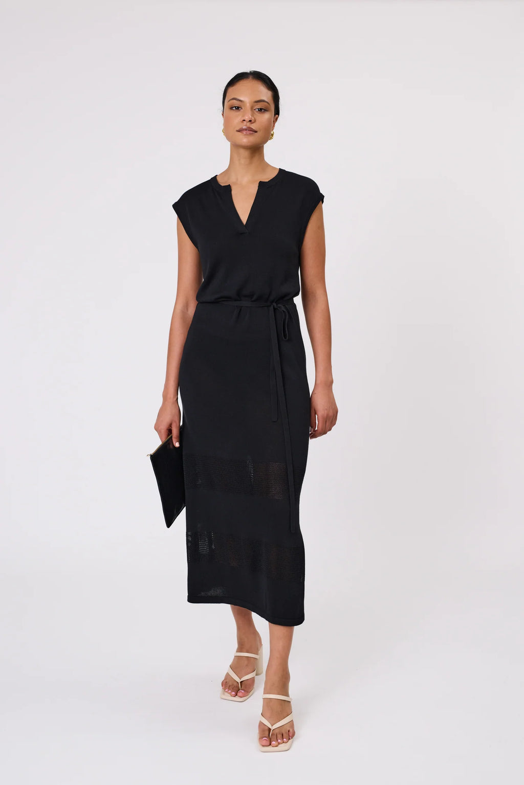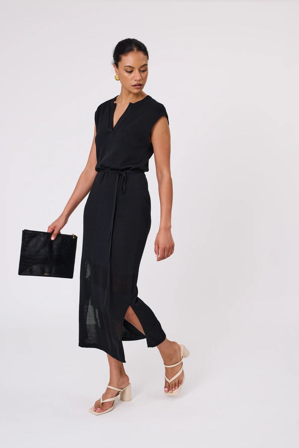 The Prima Knit Maxi Dress has you covered this season, whether it’s a day at the beach or afternoon drinks. Crafted from a luxuriously soft cotton and modal jersey fabric, this dress is all about the little details, featuring a mini cap sleeve, sheer mesh panel detail at the hem, and side splits. Define your waist with the removable waist tie and pair it with heels for an elevated look, or wear it without the tie and slip into sandals for a laid-back, relaxed style.