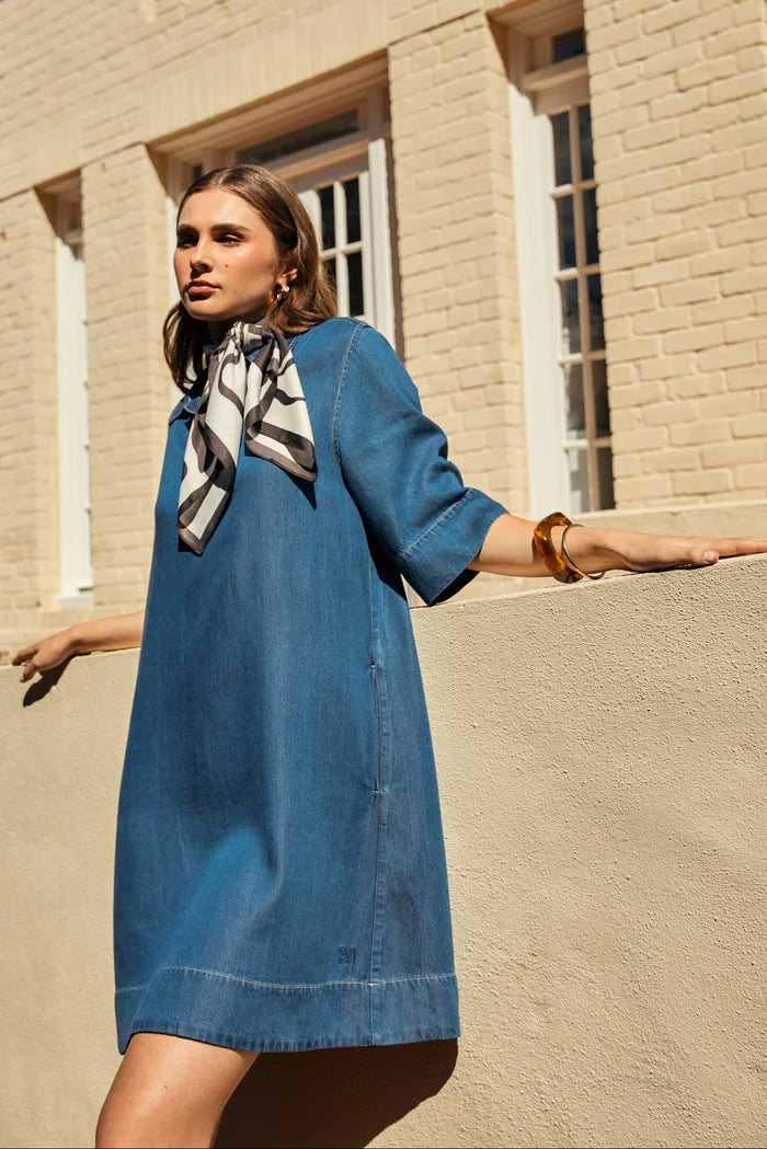 A fresh take on a timeless staple, Marlow's Verve Dress is designed for relaxed summer dressing. This classic shirt dress features half-sleeves and an A-line silhouette, cut from soft 100% tencel fabric for a flattering drape. Wear with sneakers for days on the go, or slides and a wide-brim hat for a beach-ready look. Simple yet elevated, it’s a style you’ll reach for again and again.