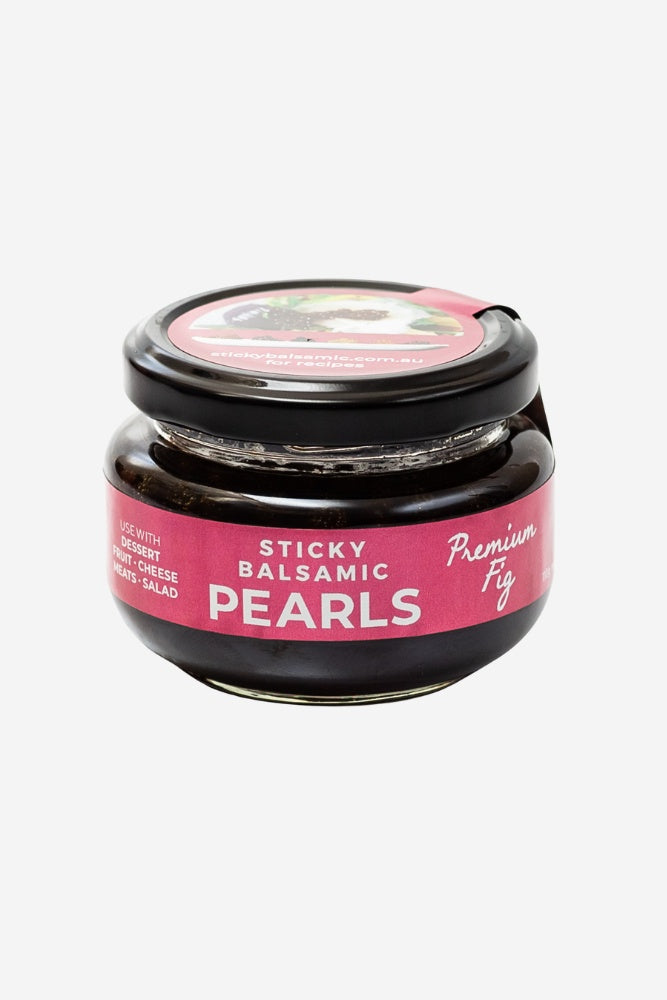 Sticky Balsamic Premium Fig Pearls have that incredibly delicious pop of flavour that you need to experience to believe. The liquid in the jar can be used too. Try a spoonful on top of some red meat, with ice cream and berries or other desserts, with a cheese plate, a salad, in a cheeky drink, or with breakfast.