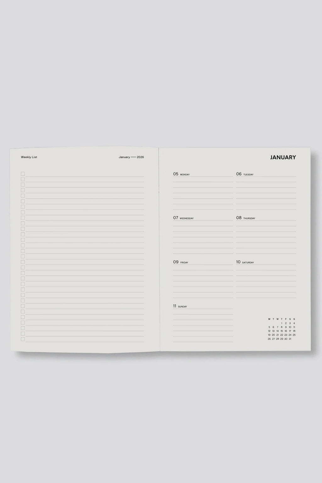 - Monthly double page planner