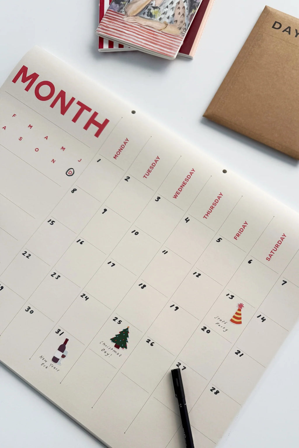 Includes an A2 sheet of colourful and fun stickers to mark your calendar with. Comes individually packaged in a coloured kraft mailer.