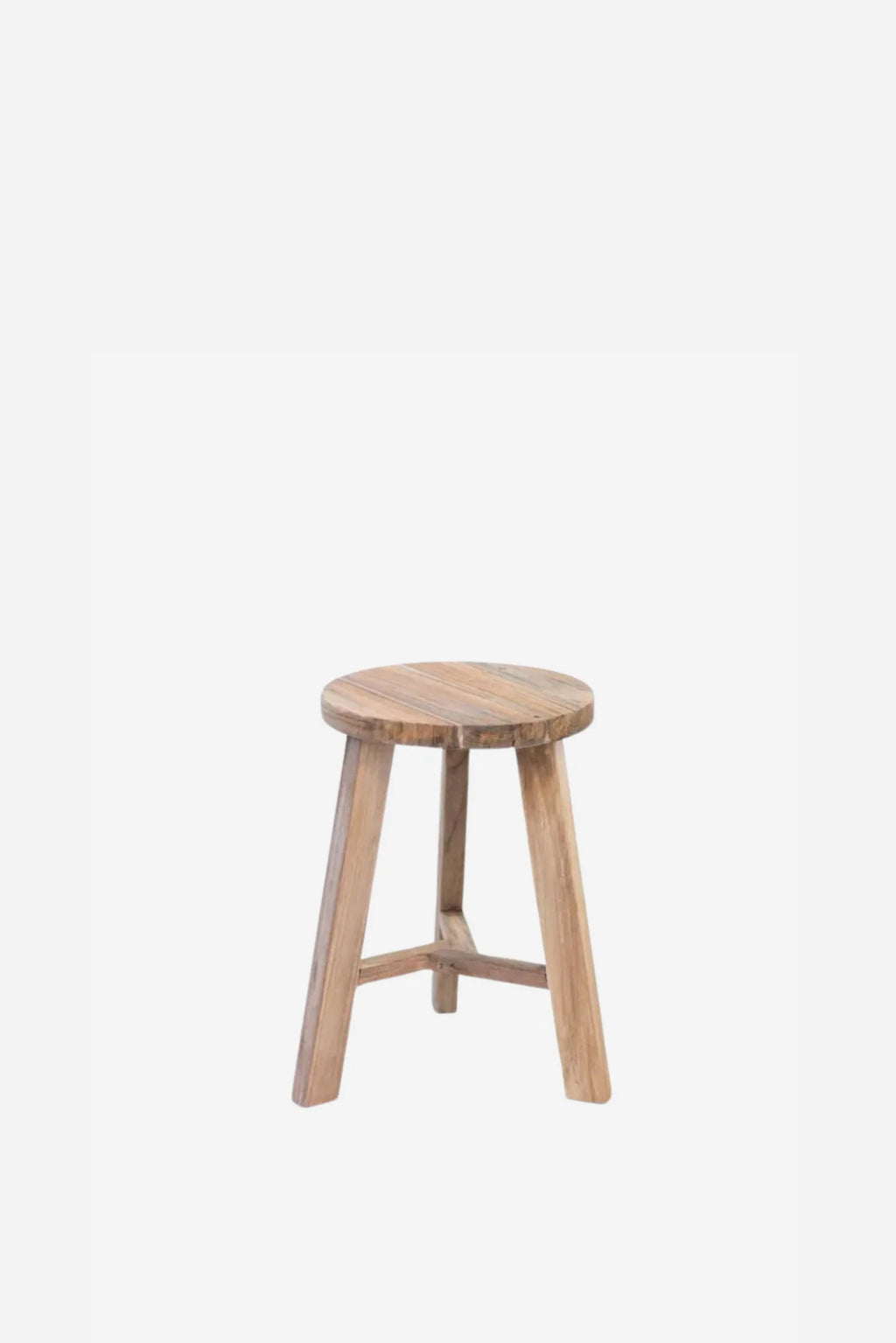 Inspired by a Victorian three-legged milking stool, this classic stool has a contemporary twist. Hand-crafted from recycled teak hardwood, it has a natural and distressed finish for a rustic-chic look.
