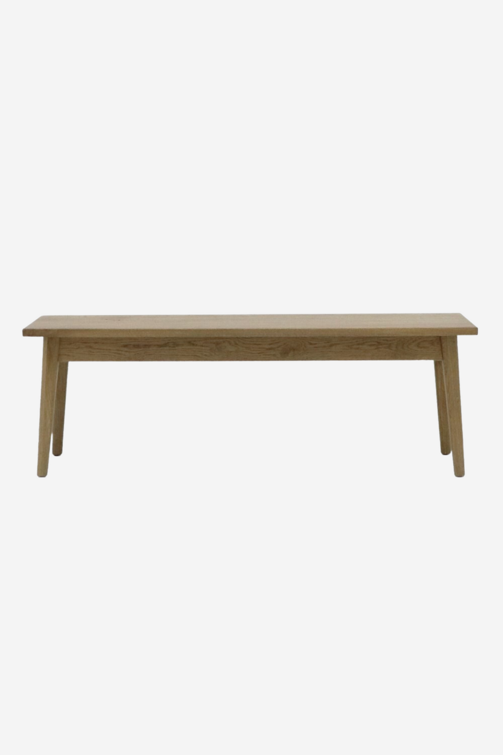 A contemporary Scandinavian style bench seat with a a strong grain and smooth finish, design with angular legs and a simple shape to create a timeless aesthetic that sits comfortably within any interior.