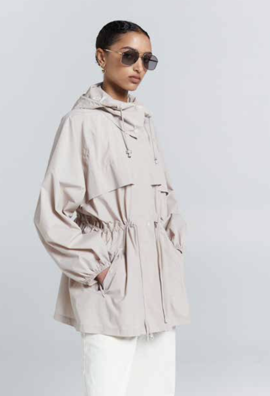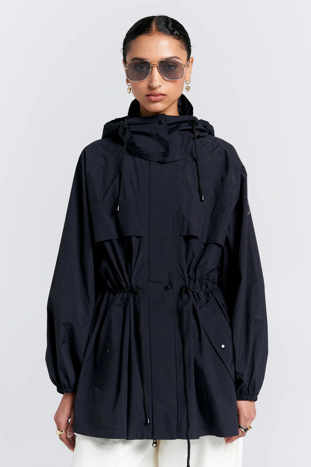 The Runaway Parka is a lightweight, packable layer built for utility. With 3000mm waterproofing and fully seam-sealed construction, it’s designed to keep you dry when the weather shifts. A cinched waist brings shape, while a collared neckline, drawstring hood, and cuffed sleeves add coverage. Deep front pockets and the signature ‘Runaway Girl’ on the sleeve complete the design.