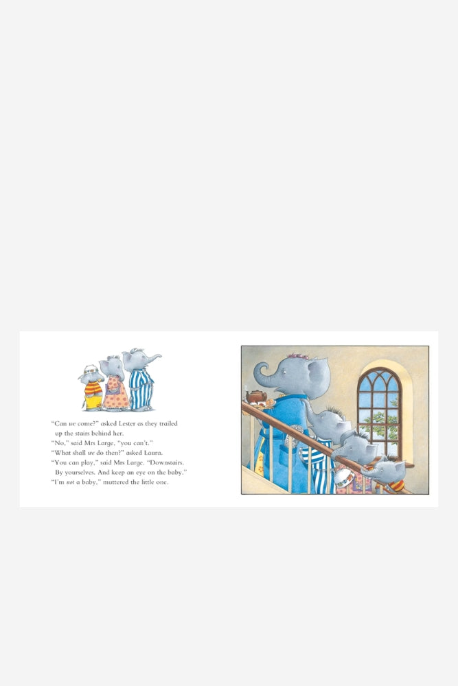 This is the story of Mrs Large the elephant - who just needs five minutes of peace and quiet away from her boisterous children!