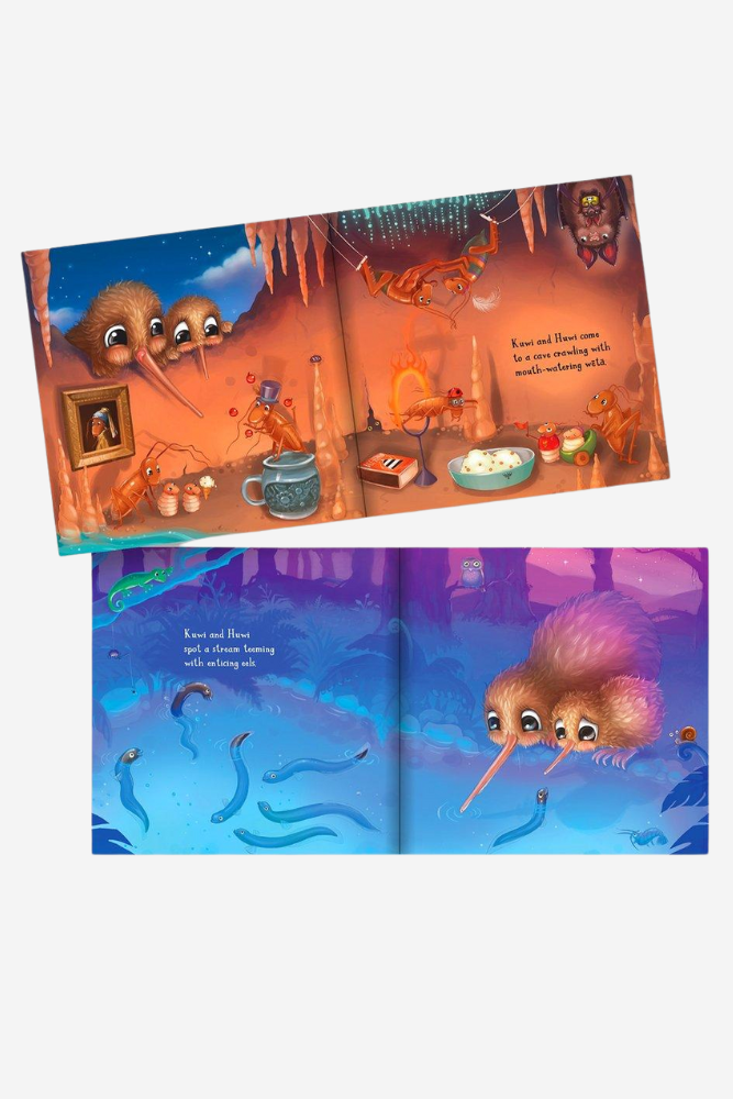 Kuwi the Kiwi decides to take Chick on his first huhu hunt. They could make huhu hangi, huhu hummus and huhu BBQ... Kuwi is an endangered brown kiwi and a new mum with a very fussy chick. Will she ever find Chick any huhu to eat? A superb book from a well known author and illustrator A simple celebration of the parent/child bond written for young children with a story parents can enjoy and relate to. Amazing, detailed, vibrant illustrations with wee native gems hidden throughout the book The second in a series that is fast becoming a New Zealand classic.