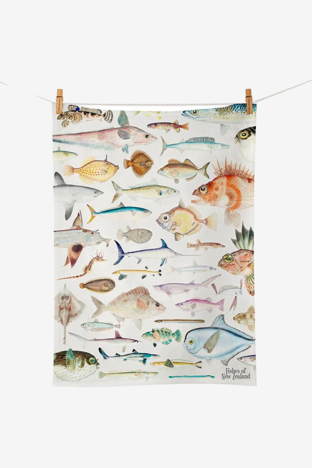 Screen printed cotton tea towel depicting a range of NZ Fish species. Perfect for the avid or hobby fisherman in your life!