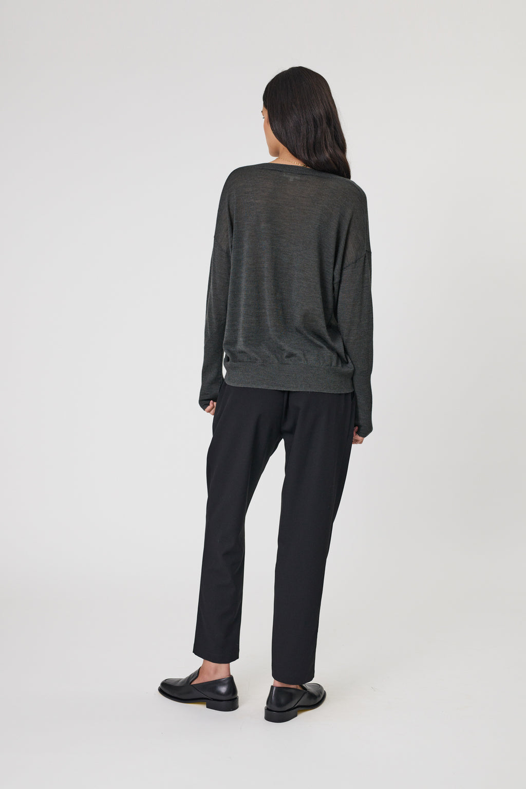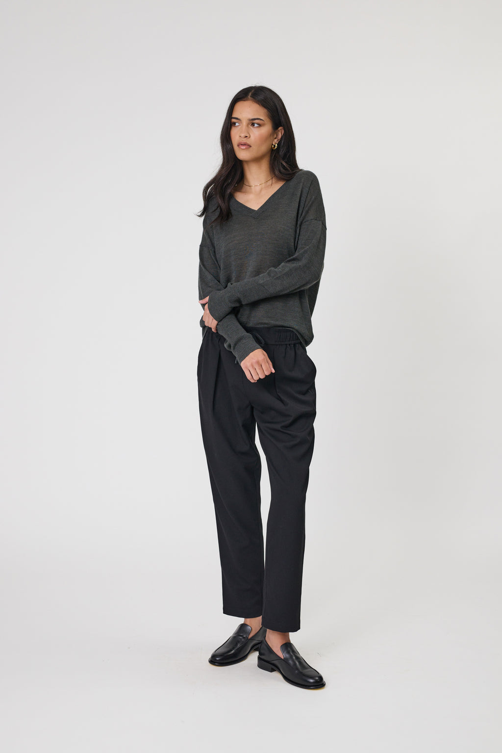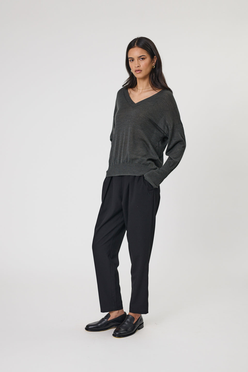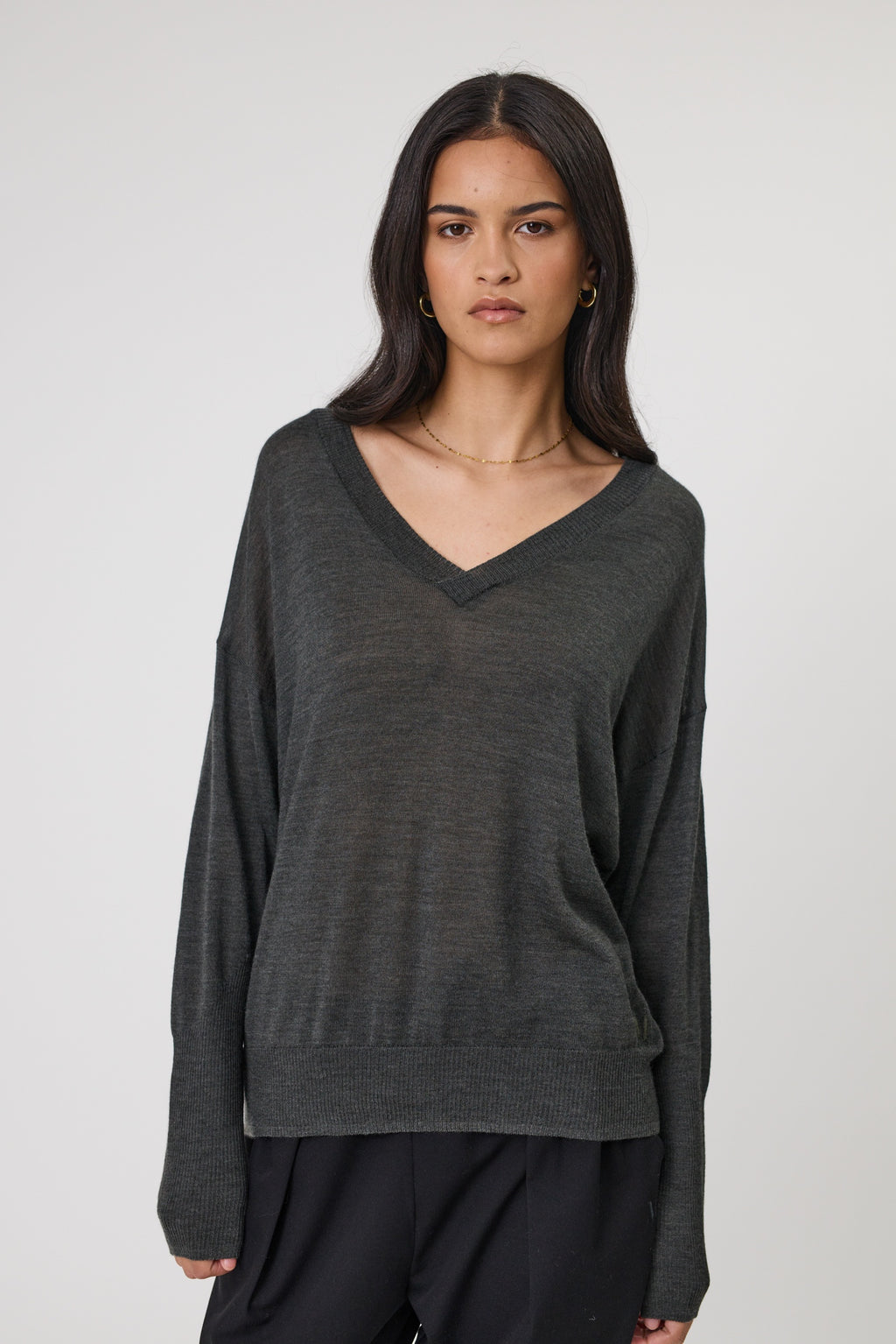 Enjoy lightweight warmth with the Alto Merino V-Neck, an elevated essential crafted from luxuriously soft 100% Biella Merino - an ultra fine wool known for its premium quality. This refined knit features a relaxed fit with a ribbed crossover v-neckline and deep angled rib detailing at the sleeves, bringing elevated details to a timeless silhouette. Designed for a relaxed fit, it works equally well as a standalone piece or a versatile layering option.