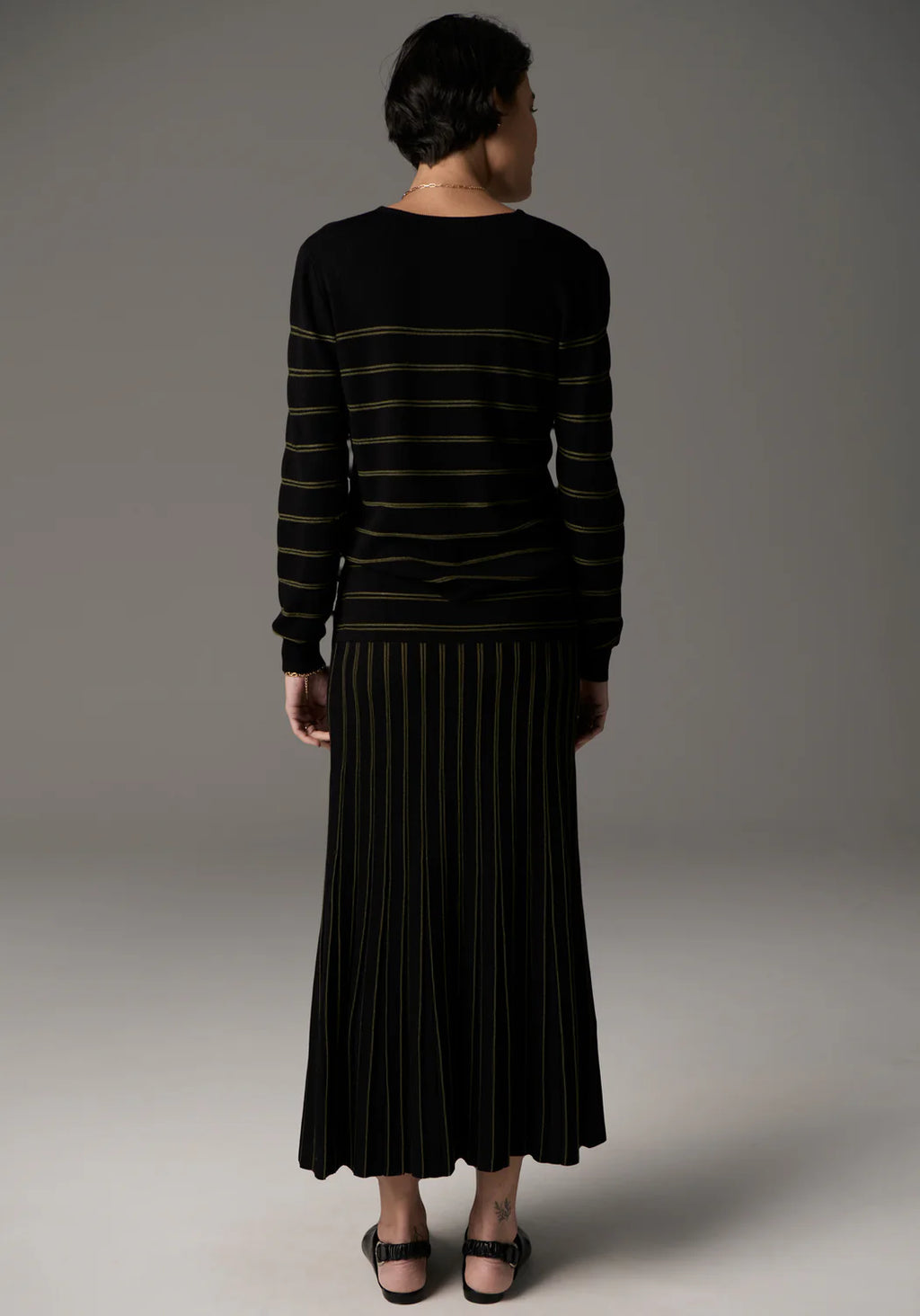 The Gizelle Lurex Striped Knit takes a wardrobe classic and adds a fun yet elevated twist - with tiny bright lurex double stripes bringing texture and a little sparkle.