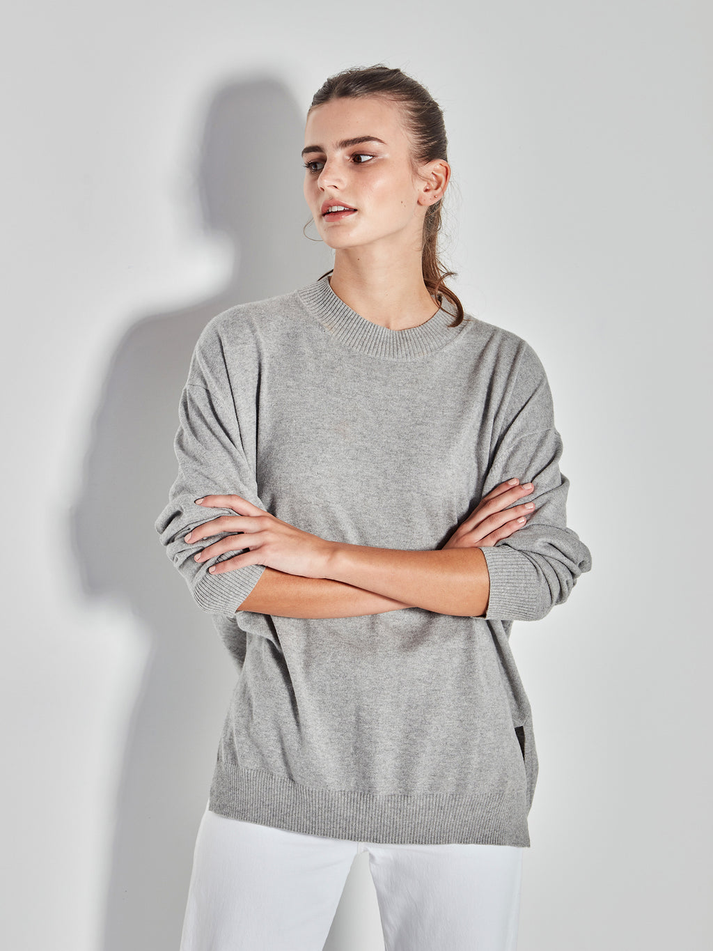 A refined oversized style, the Crew Sweater from JHL by Juliette Hogan features a drop shoulder, split hem and higher crew neck for extra warmth and comfort.