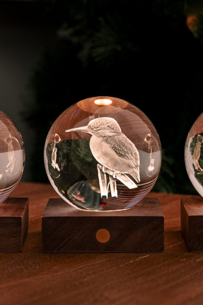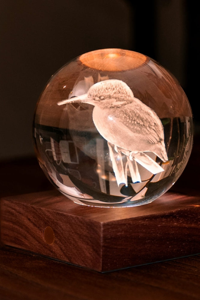 The Gingko Amber Crystal Ball Night Light Collection is designed to add a touch of magic and wonder to your space. It features unique 3D laser-engraved designs.