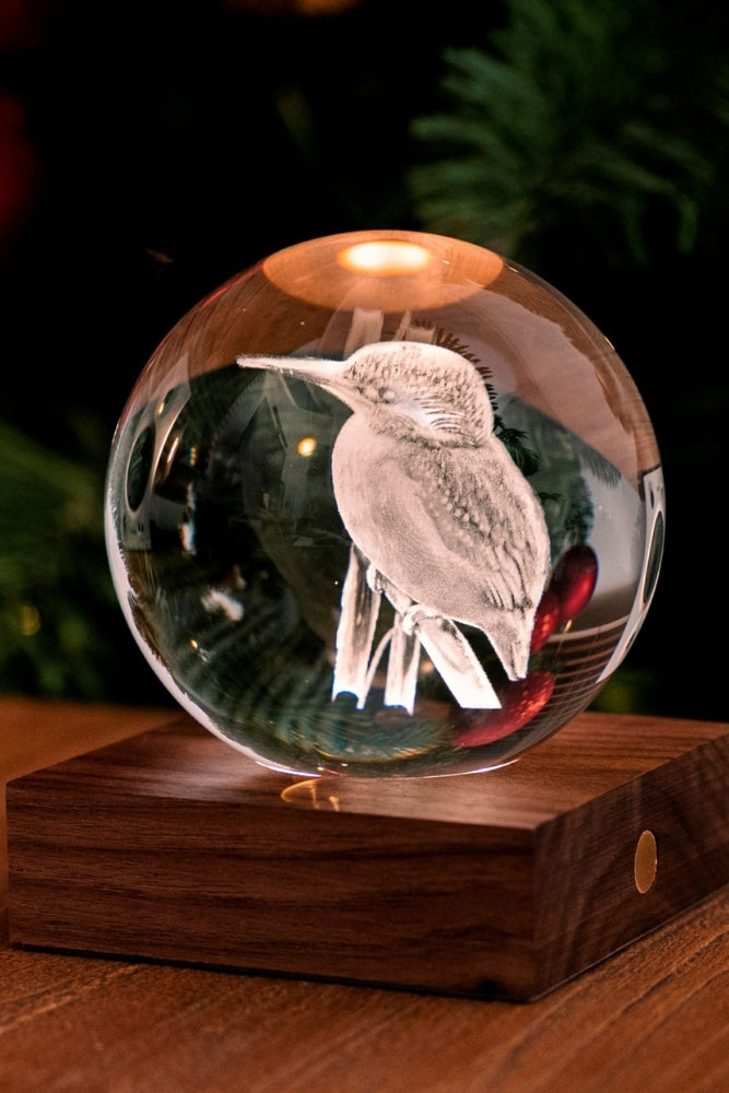 With a height of 12cm, the crystal ball pieces sit on natural walnut wood base to complement your interior design. You can switch between three light intensity levels by touching the copper button on the front of the solid natural wood base. The crystal is also polished to a shine that reflects light and creates a stunning effect in any room. The walnut base is fitted with a rechargeable battery that can keep your space illuminated with stunning light for up to 15 hours. The USB-C port in the back makes for easy charging.