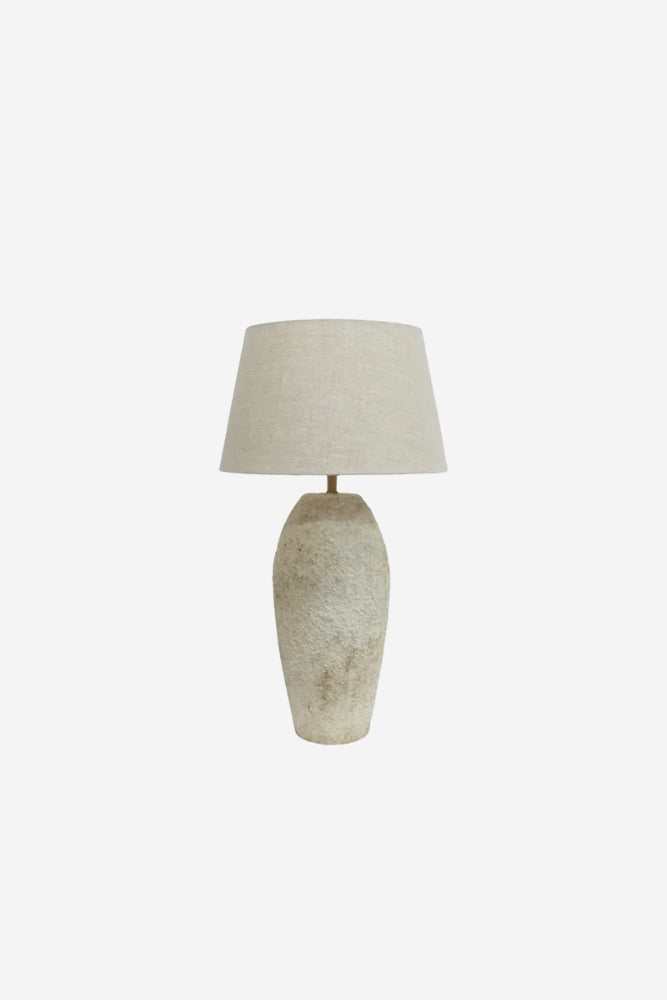 Rustic terracotta lamp base, featuring a textured off white finish for a modern organic style.