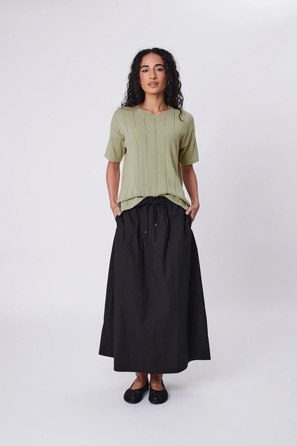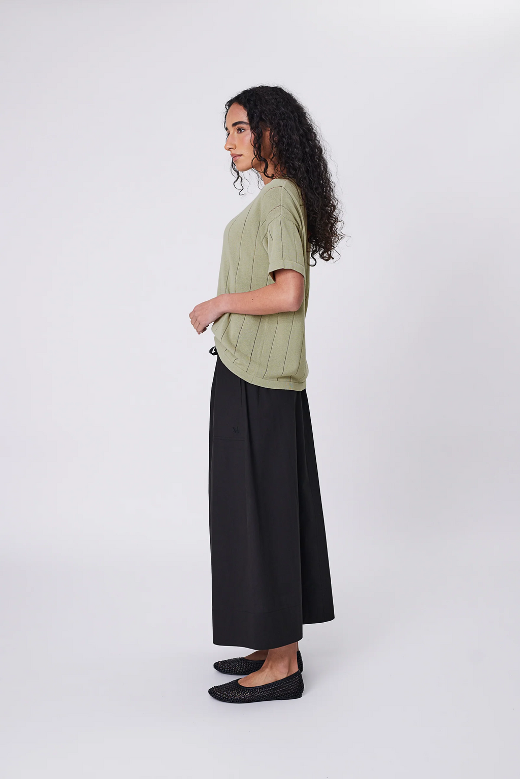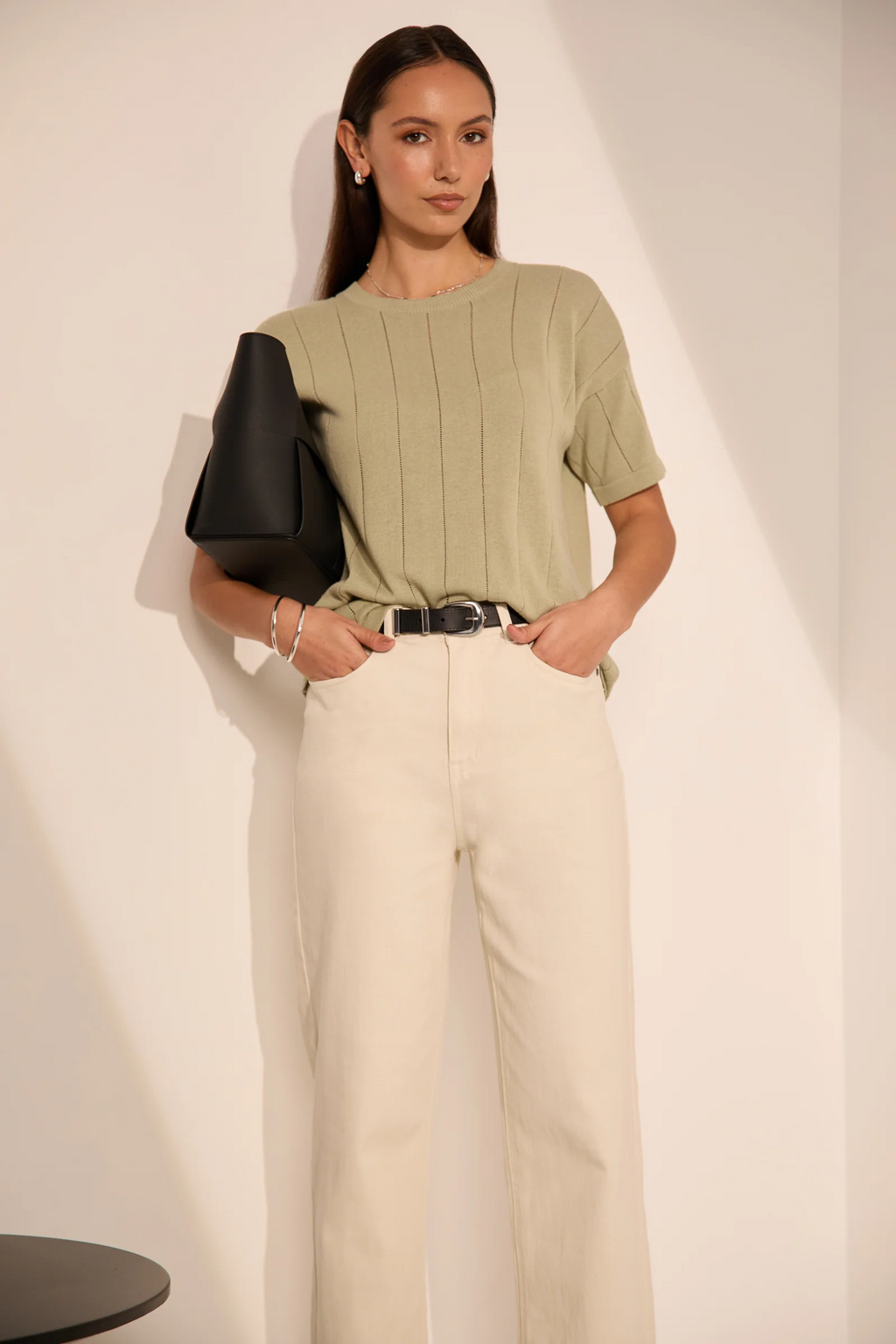 Based on a best-selling silhouette, the Ember Knit Tee is sure to become a new favourite. This knit tee features an easy, relaxed silhouette, with dropped shoulders and a boxy cut. Crafted from 100% cotton yarn for softness and breathability, and knitted in a pointelle stripe knit design for added texture. An elevated alternative to a classic tee, it’s easy to style up or down, whether with a pair of shorts or layered under a blazer for work.